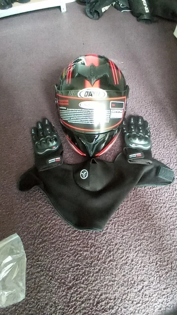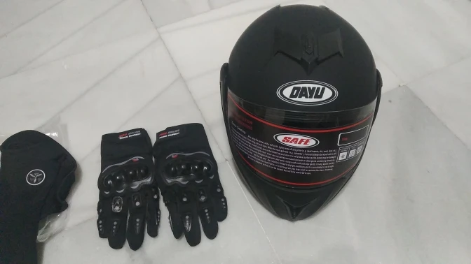 Шлем в порядке, хорошая мера и хорошее качество. Я прибываю как раз вовремя. P.D: перчатки немного туго, но они того стоят. Спасибо за подарки; Перчатки и трусики.
