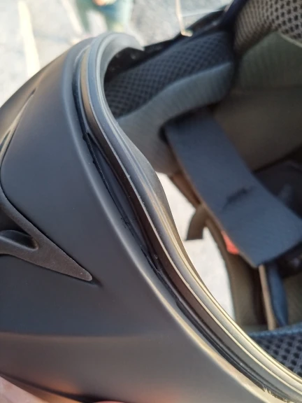 Друзья,не повторяйте моей ошибки! Посмотрите на фото,пластик деформирован и с отвратительным запахом. Вот фото шлема на сайте магазина сбоку,спереди-всё замечательно! А мои фото СНИЗУ! Сразу и видно косой шлем! P.S. Описание товара-поставил 5 звёзд,а что написано хорошо,только в натуре шлем кривой!