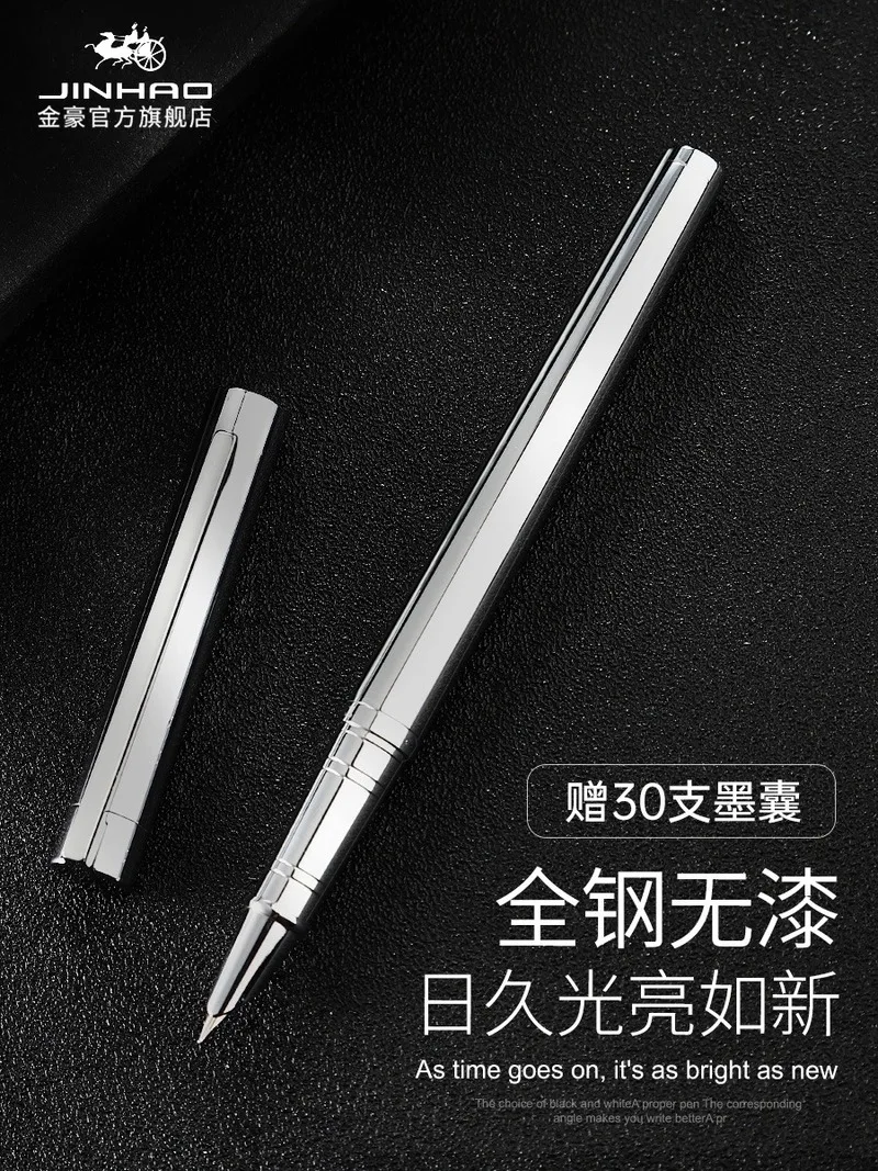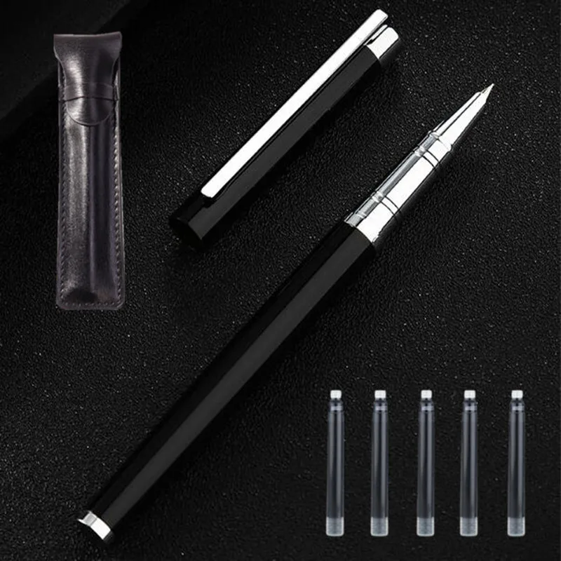 1 шт. перьевая ручка Jinhao Экстра тонкийтонкий наконечник Нержавеющаясталь черный металлический краска для написания школьные канцелярские принадлежности