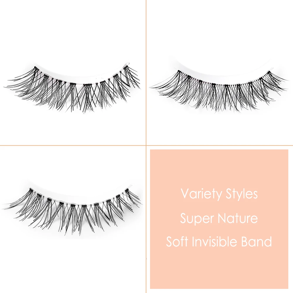 Оптовая продажа 50100 пар накладных ресниц, натуральные мягкие невидимые ленты ручной работы, длинный толстый многоразовый макияж