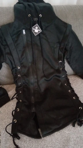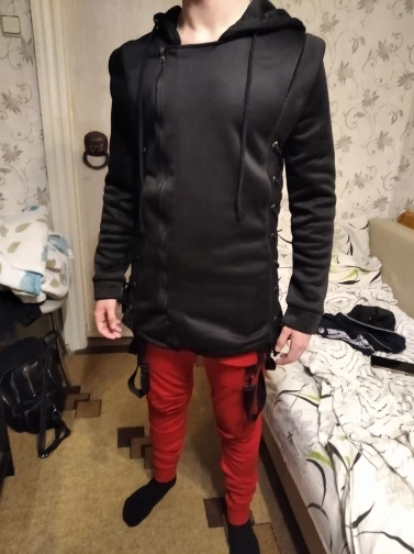 Данная толстовка не пальто. Надпись «Assassin's Creed Dark», на толстовке не обнаружена. Это все несоответствия в описании товара. Качество куртки хорошее. Манжеты на рукавах разного уровня обтягивания. Но это не особо критично. Материал с начёсом, но тонкий. Ветер держать не будет, однако даст телу дышать и не потеть. И ещё, горловина получается слишком открытой. В целом, товар понравился. При низких температурах пока не тестировал.