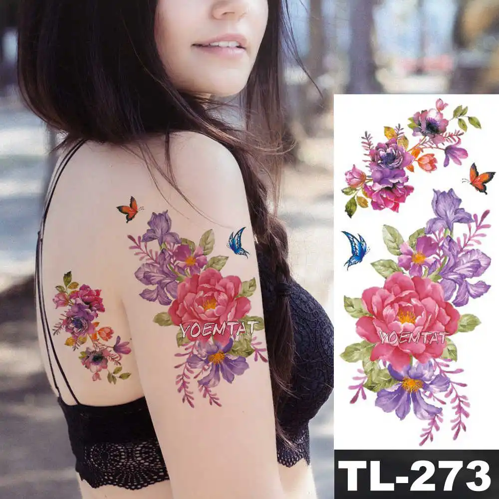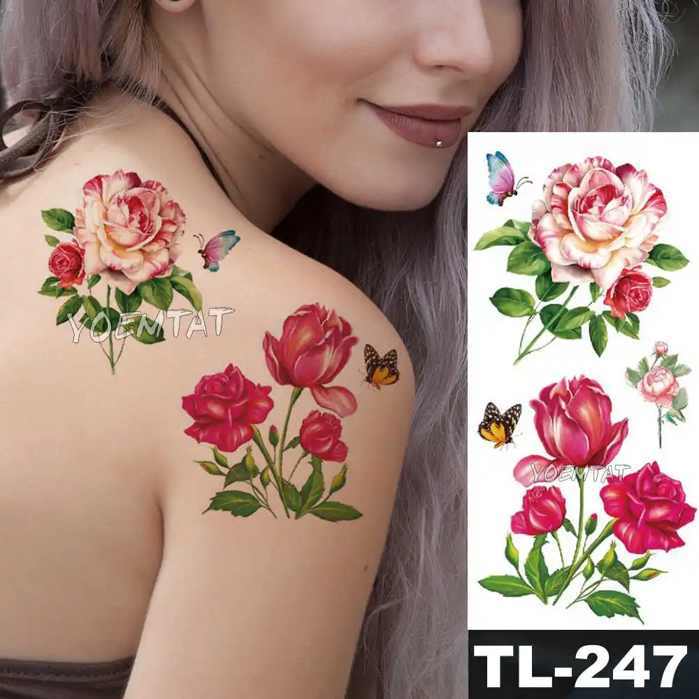 Большой цветок Водонепроницаемый поддельные 3D Роза Временные татуировки Дейзи Лили Детские наклейки-татуировки-иммитации руки шеи Драгоценности для боди-арта для руки