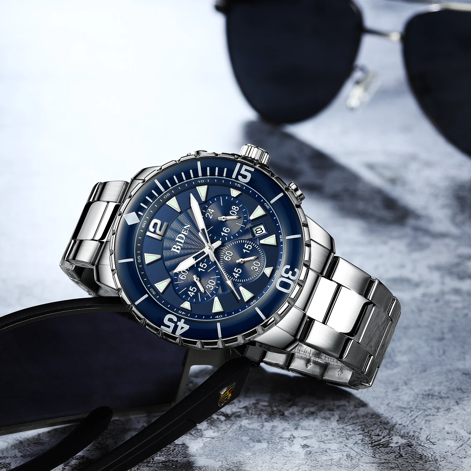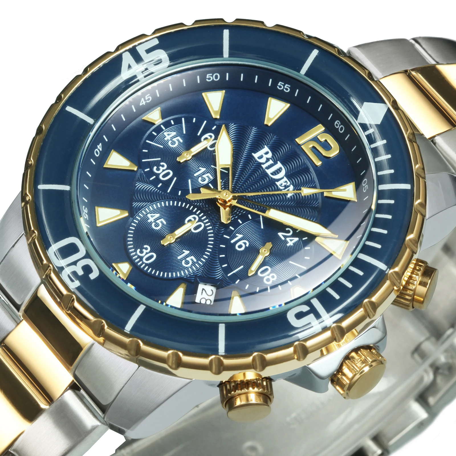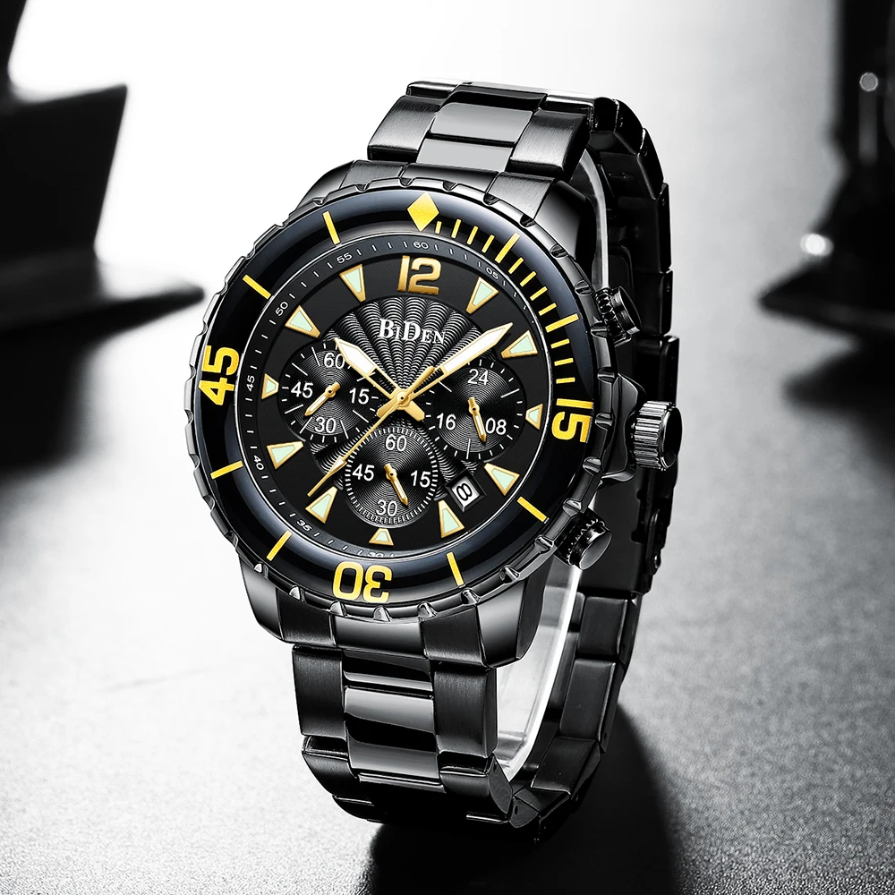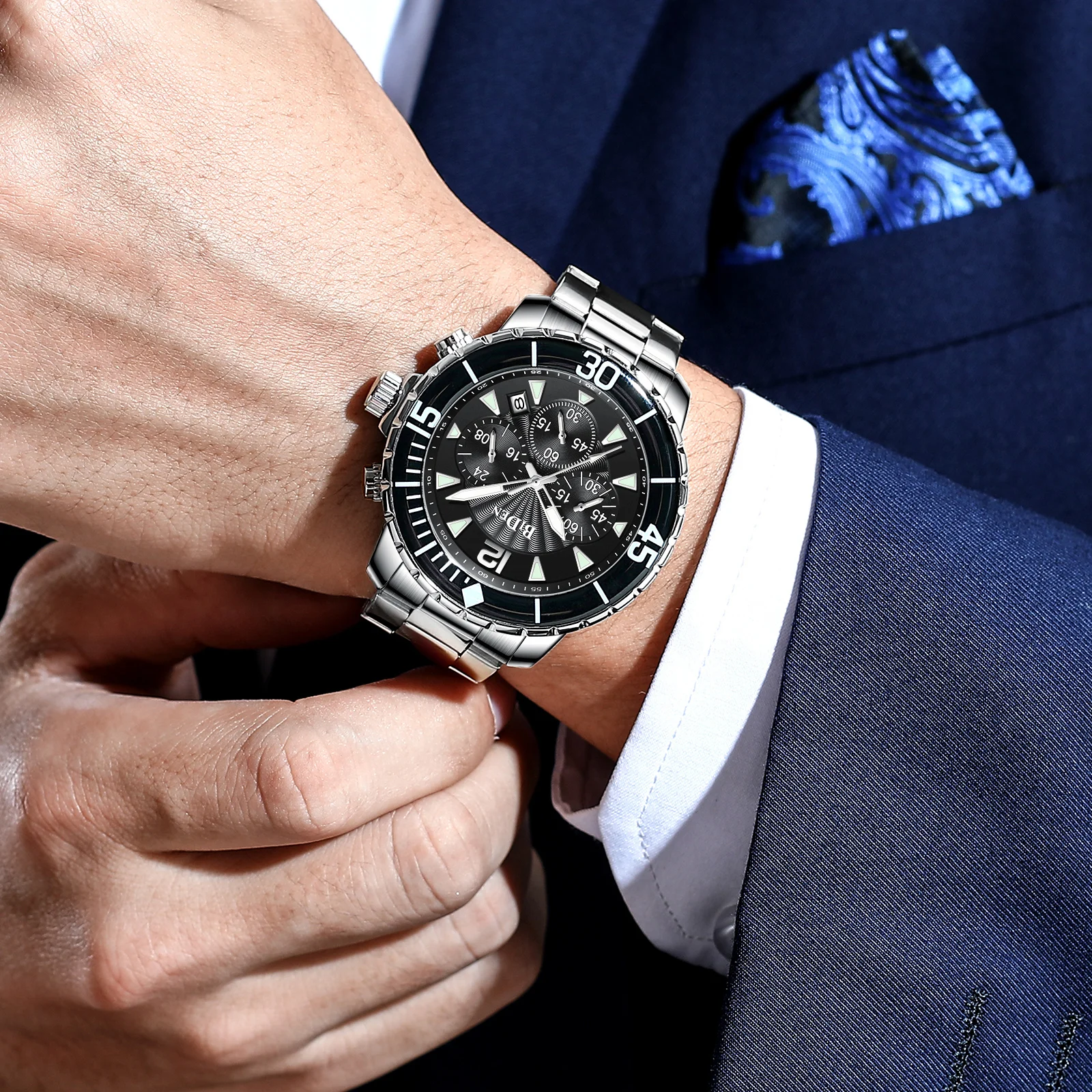 Часы мужские наручные BIDEN в стиле милитари, роскошные, кварцевые, со стальным ремешком, многофункциональные, s 2020