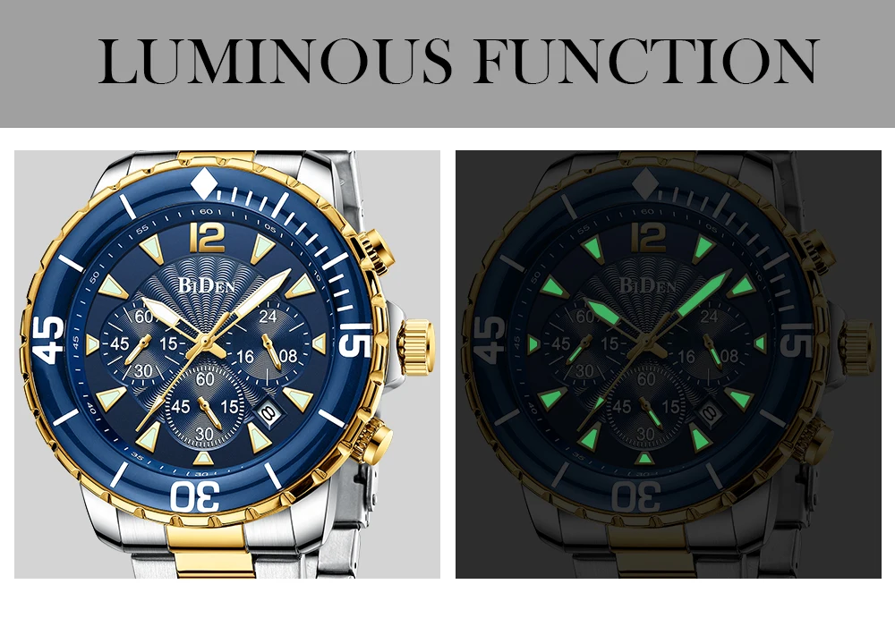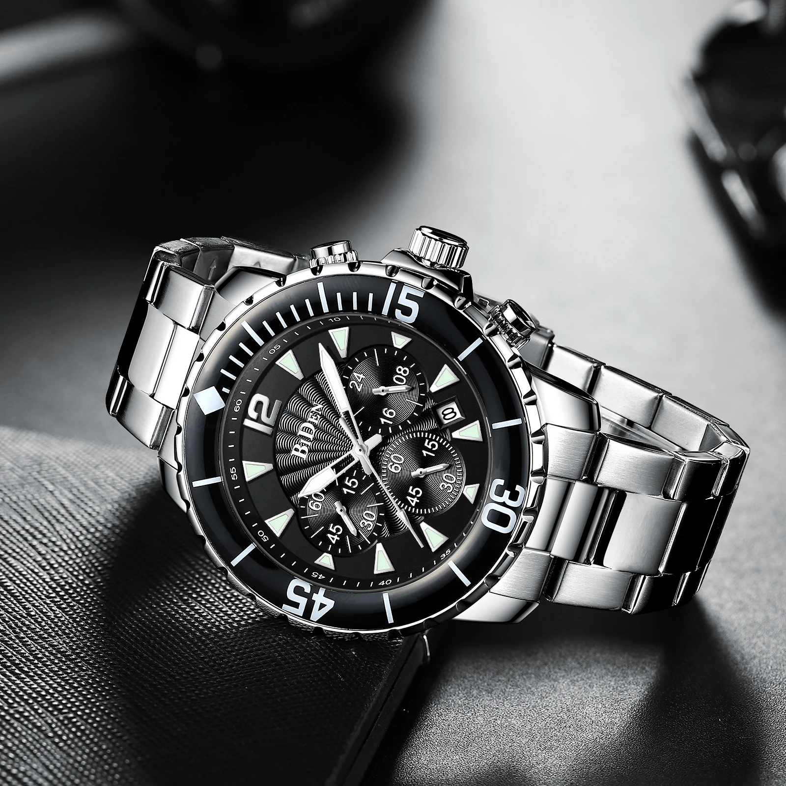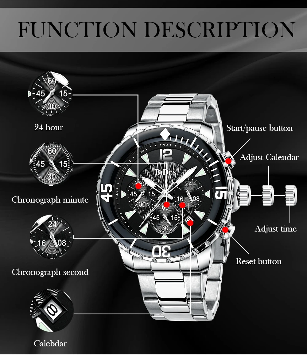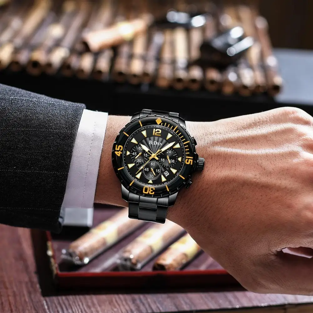 Часы мужские наручные BIDEN в стиле милитари, роскошные, кварцевые, со стальным ремешком, многофункциональные, s 2020