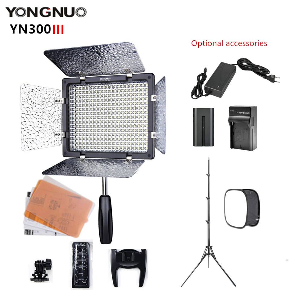 Светодиодная лампа Yongnuo YN300III YN300 III YN-300 III3200k-5500K CRI95 светодиодный фотокамеры, лампа для макияжа TikTok с аккумулятором/штативом на выборАдаптер питания/Сотбокс