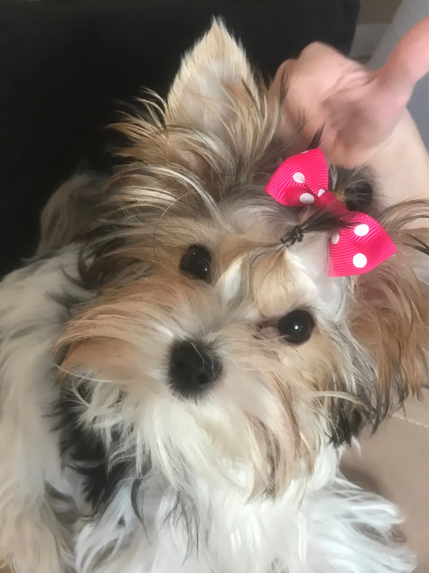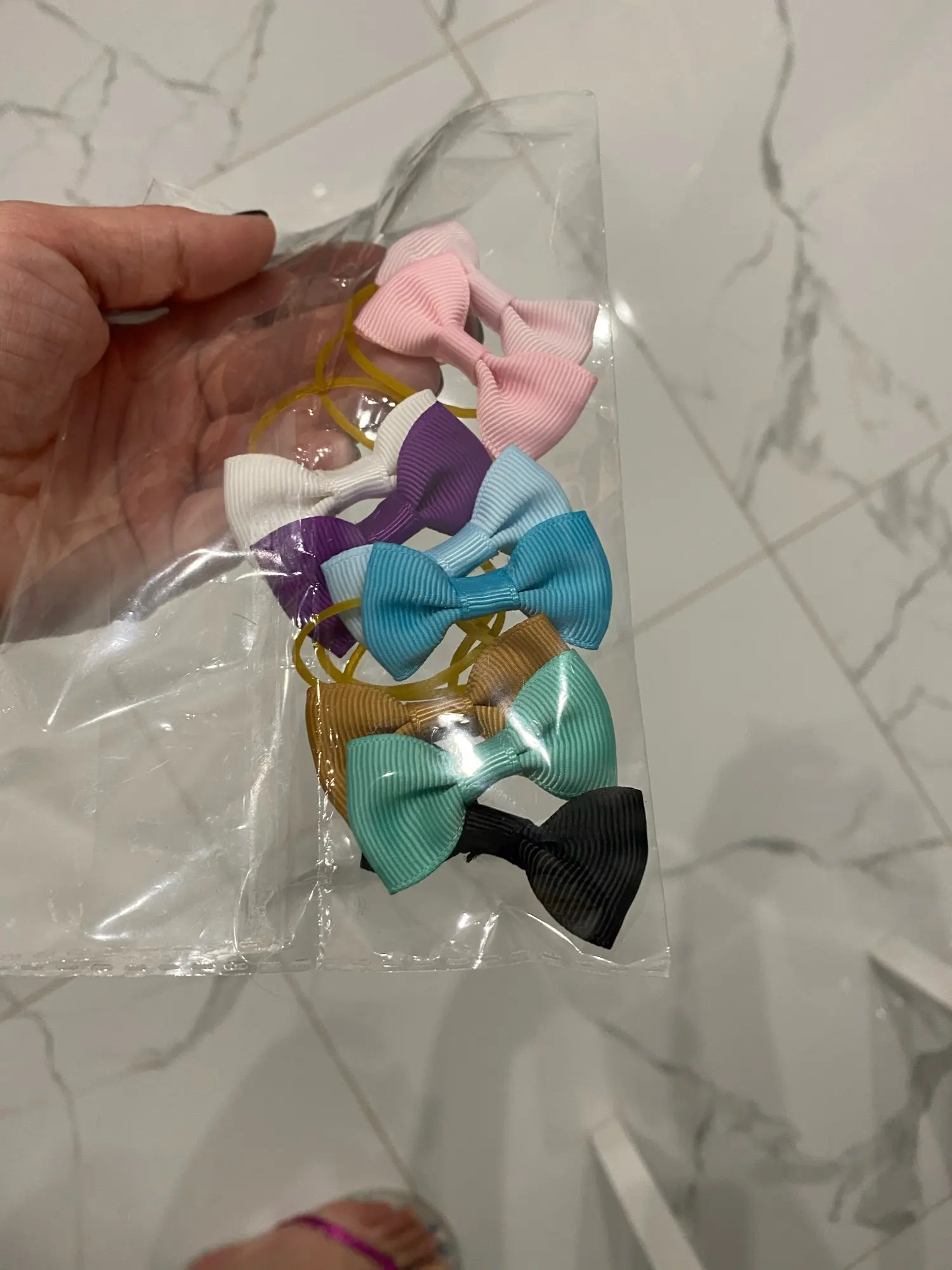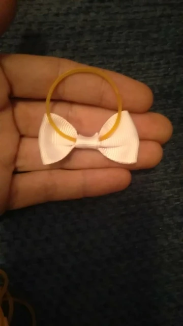 Для собак не подходит, если только у них не толстые косы. Резинка слишком толстая и длинная, надо ее тридцать три раза вокруг тонюсенького хвостика обернуть, неудобно. Сами бантики красивые. Если придумаю как поменять резинки на маленькие будем носить