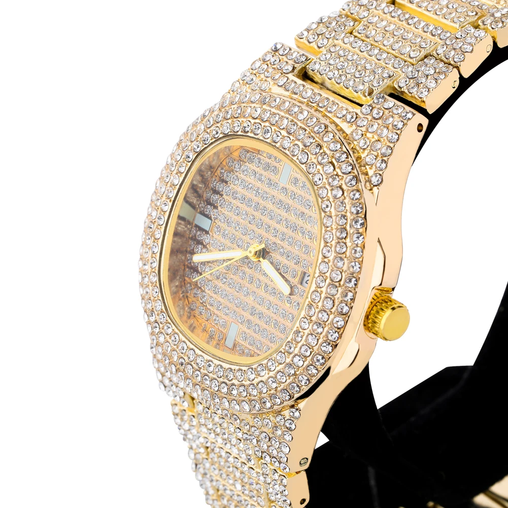 2021 Iced Out Часы Хип-хоп золотые мужские кварцевые часы мужские д...