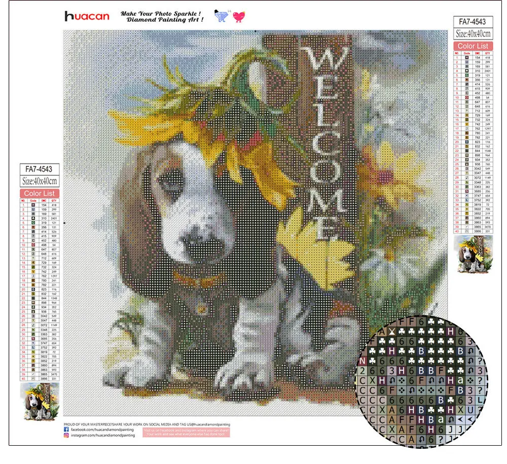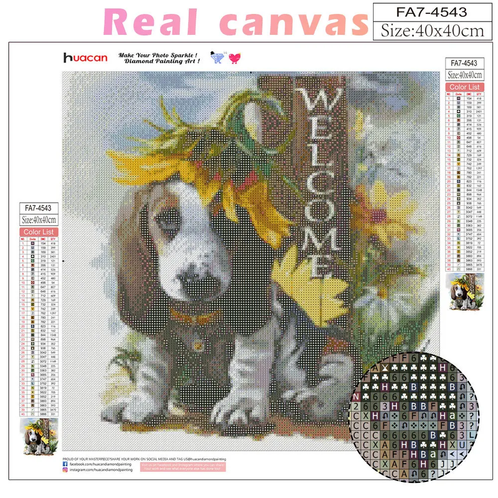 HUACAN DIY алмазная живопись текст добро пожаловать камни в форме ромба Круглая Мозаика Стразы Алмазная вышивка Подсолнух животных собака украшения