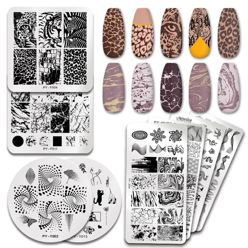 Пластины для стемпинга ногтей PICT YOU, Мраморная текстура, с изображением животных, цветов, змеи, Рождественская тема, 12 х6 см, трафарет для дизайна ногтей