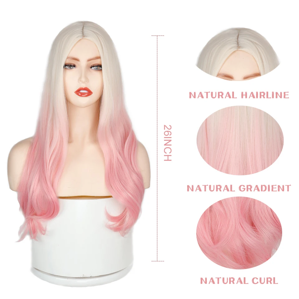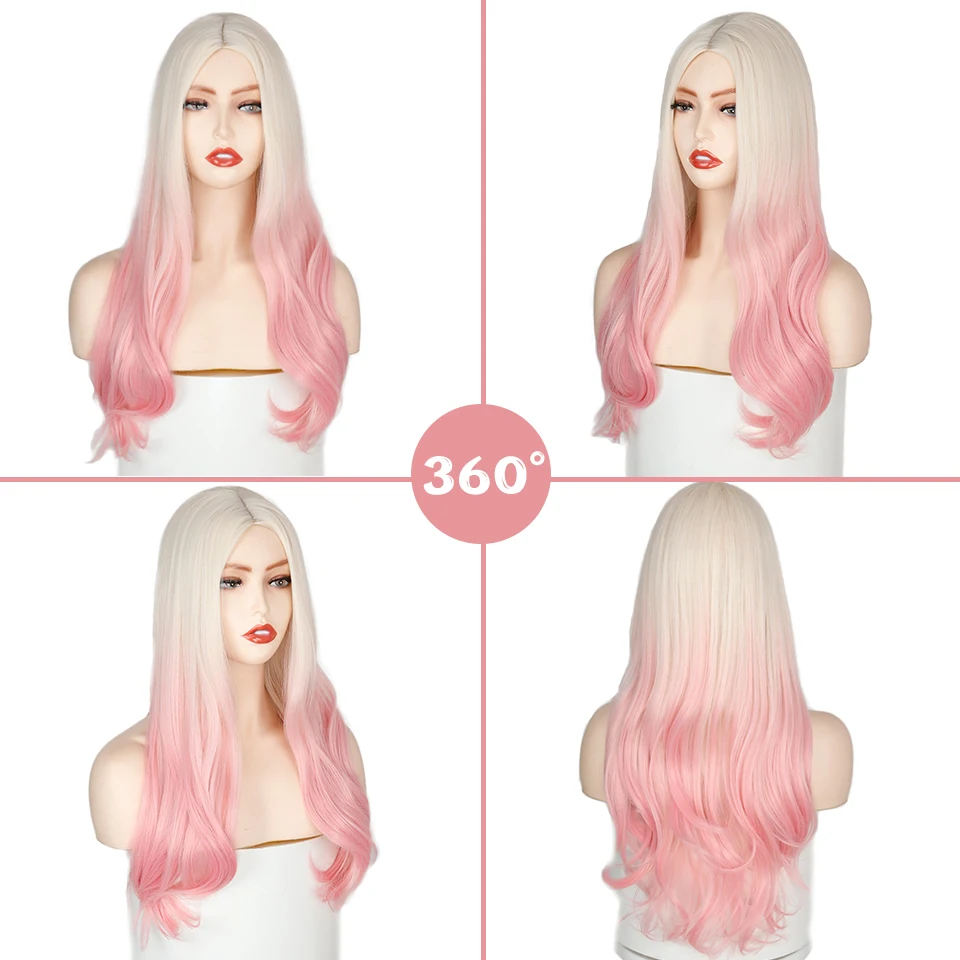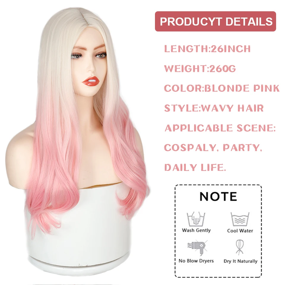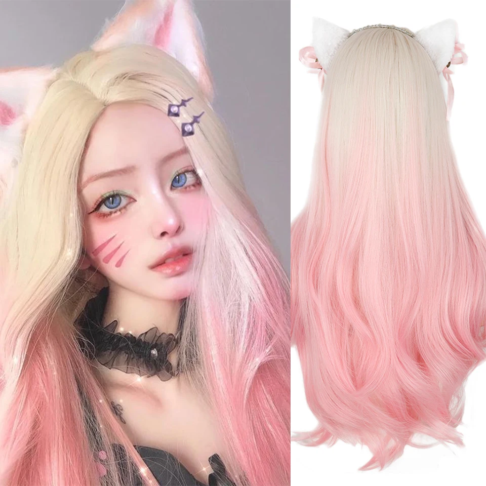 Длинный волнистый парик Ombre синтетический парик Золотой парик розовый парик женский Ahri KDA Косплей средние натуральные волосы парик из термостойкого волокна
