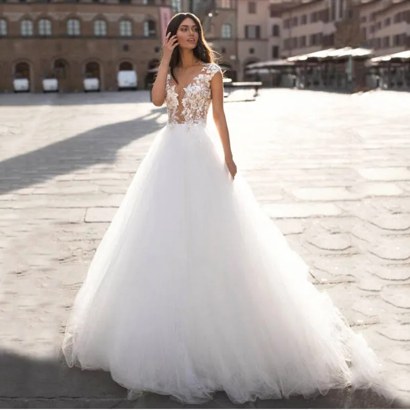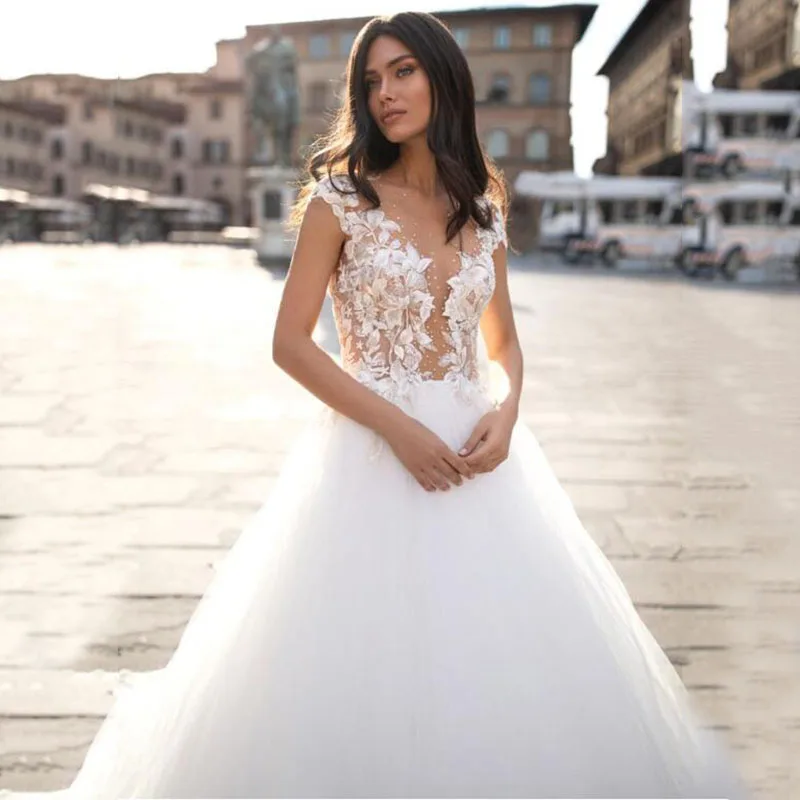 Сексуальная принцесса свадебные платья Прозрачное нижнее белье платье трапециевидной формы с кружевной аппликацией свадебное платье размера плюс свадебное платье Свадебные платья novia 2021