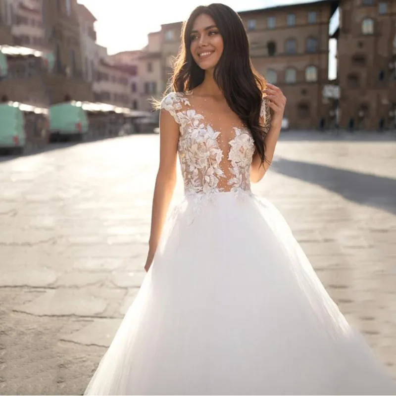 Сексуальное свадебное платье принцессы, прозрачное ТРАПЕЦИЕВИДНОЕ свадебное платье с кружевной аппликацией размера плюс, свадебное платье vestidos de novia 2021