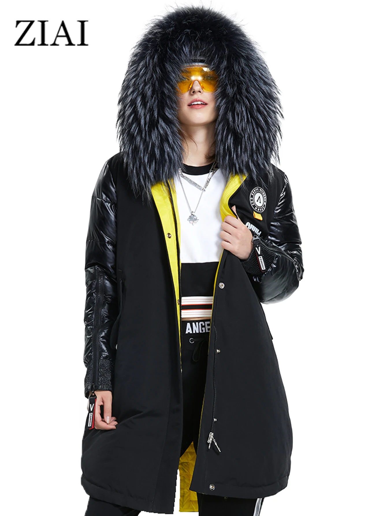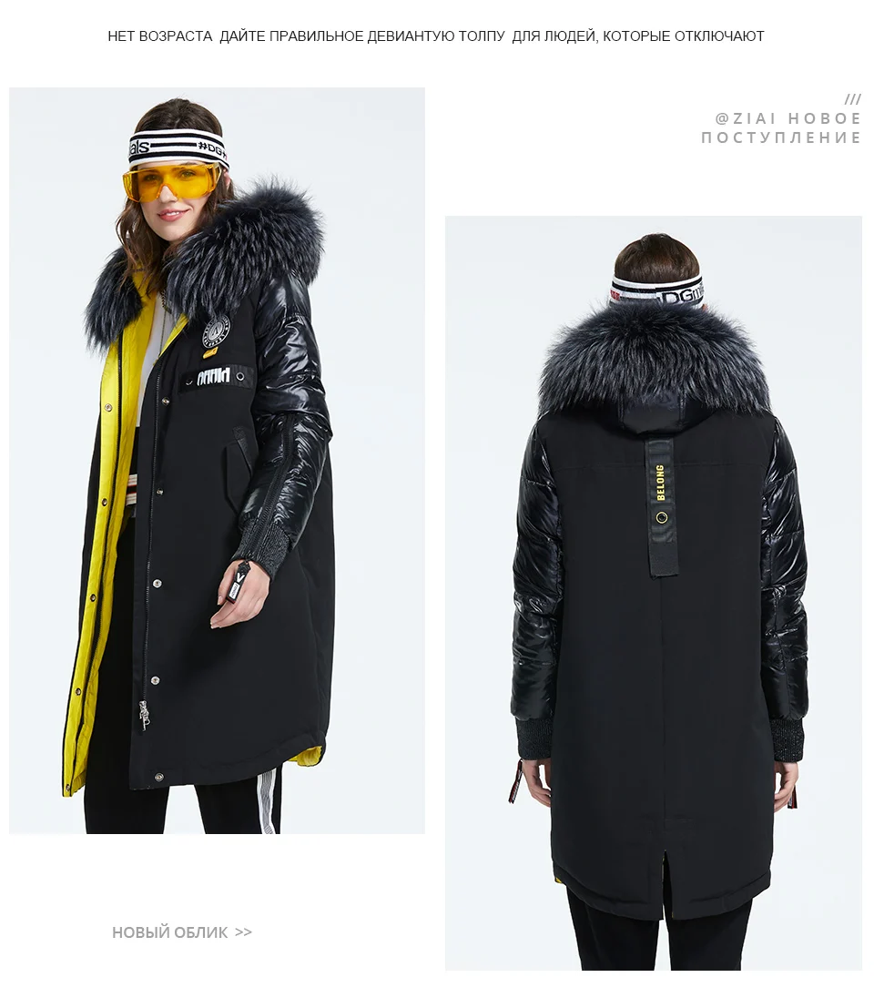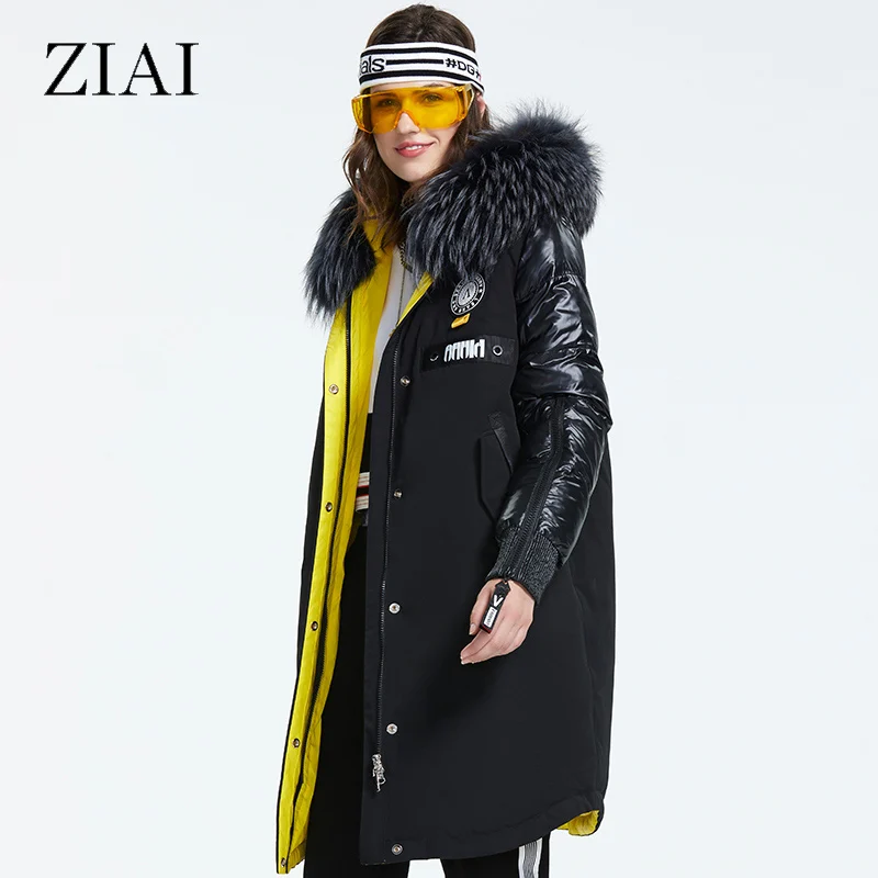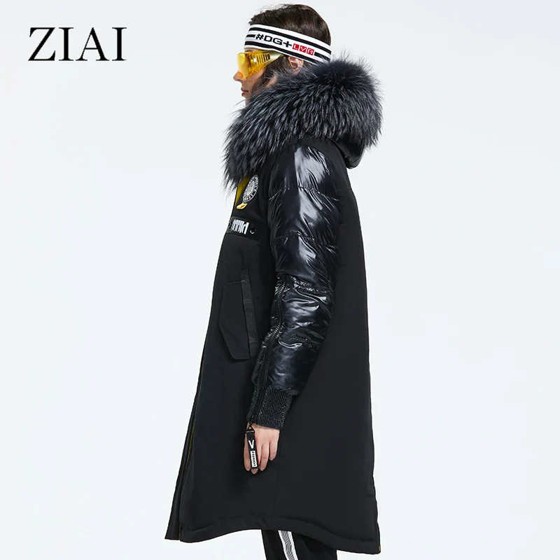 Зимний женский пуховик ZIAI, длинный пуховик на молнии с воротником из натурального меха, 2020, ZR-3022