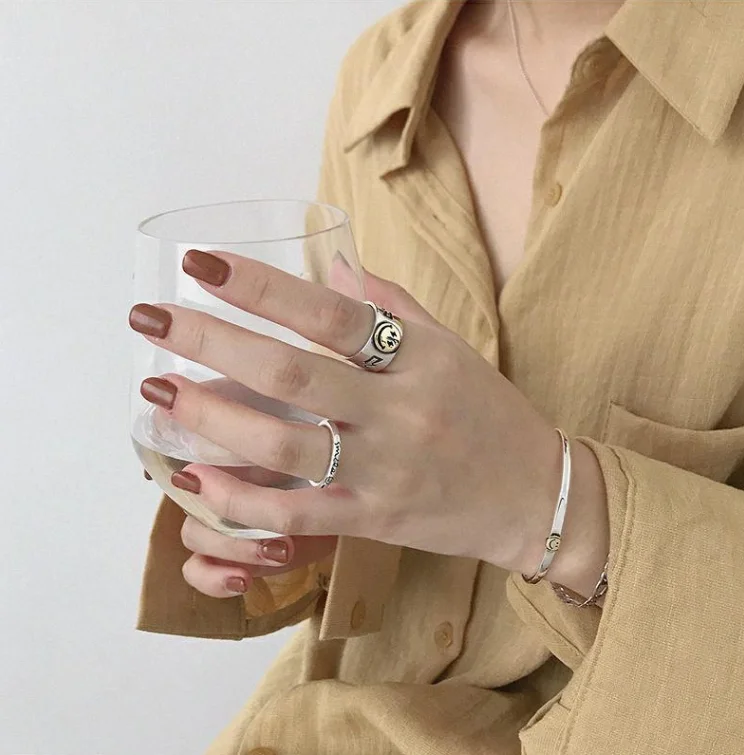 Кольцо в стиле ретро со смайликом INS, Женское кольцо с улыбкой, ст...