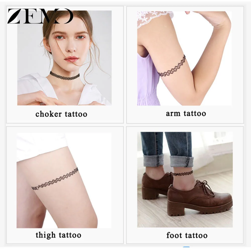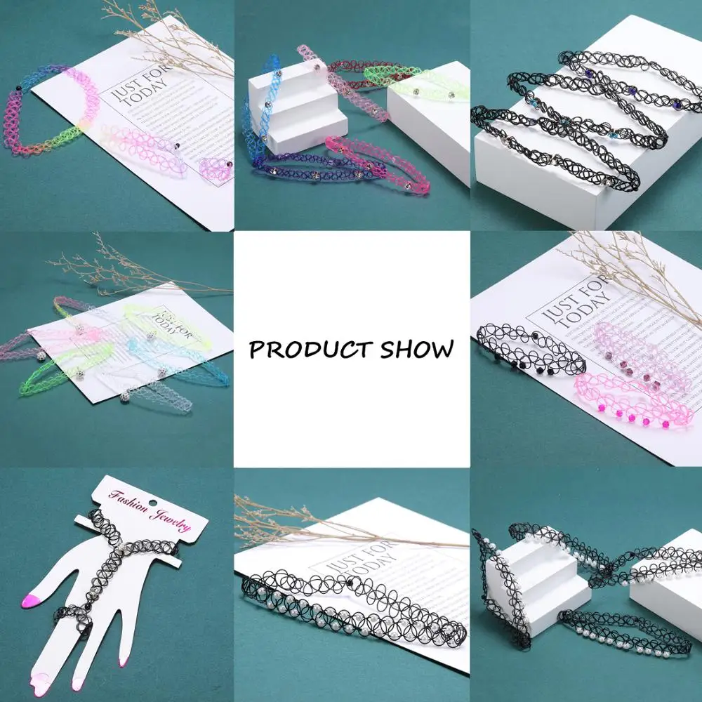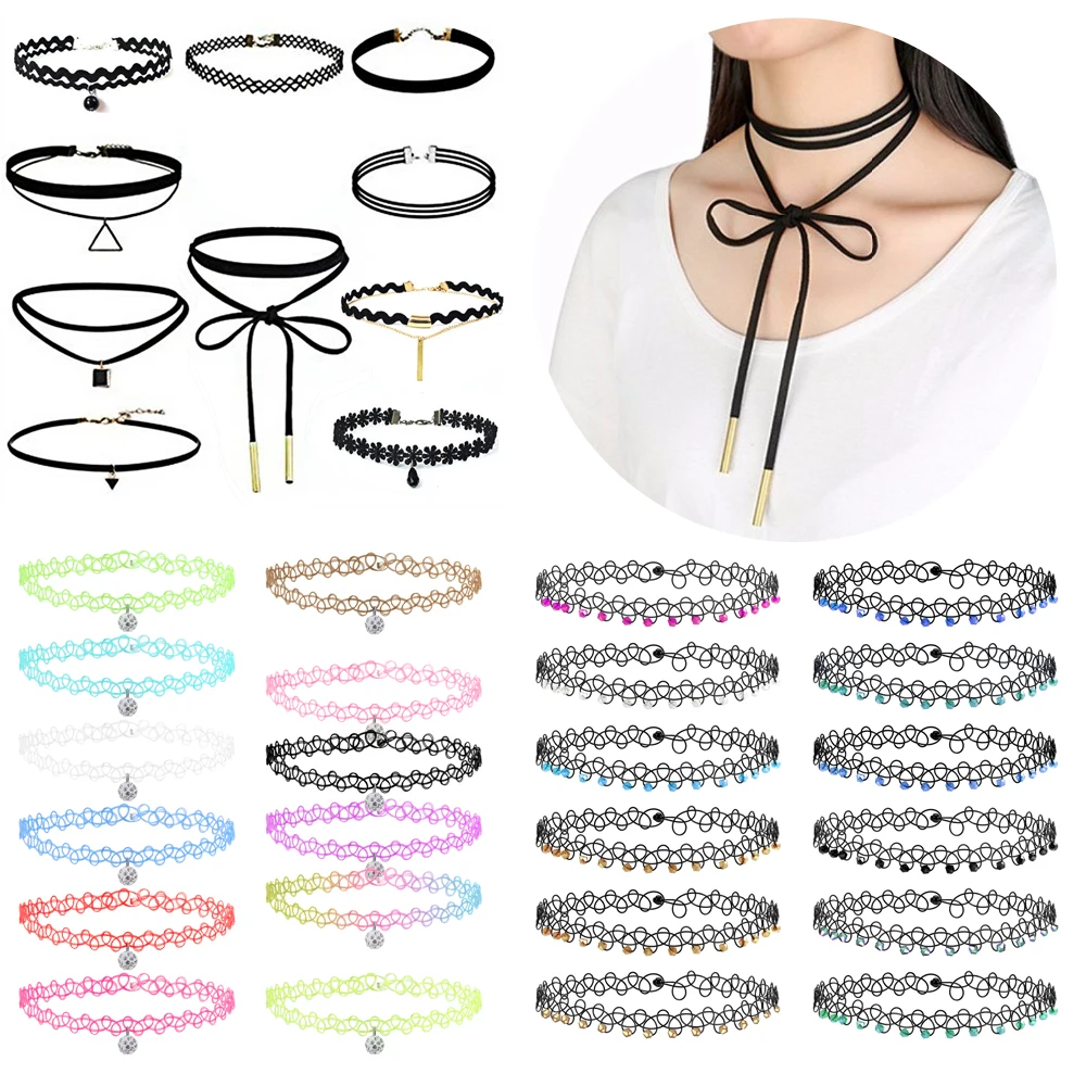 Винтажный в стиле панк готика набор из ожерелья-чокера с татуировкой для женщин и девушек, эластичное кружевное колье с ажурным отверстием, черное ожерелье-цепь