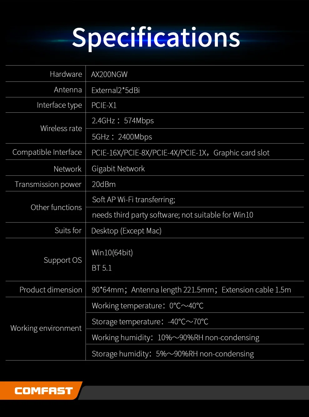 Feature7ax200 pcie;wifi pcie;ax200ngw;wi fi adapter for pc