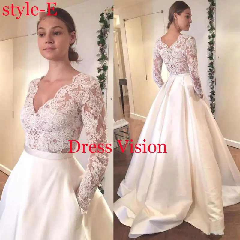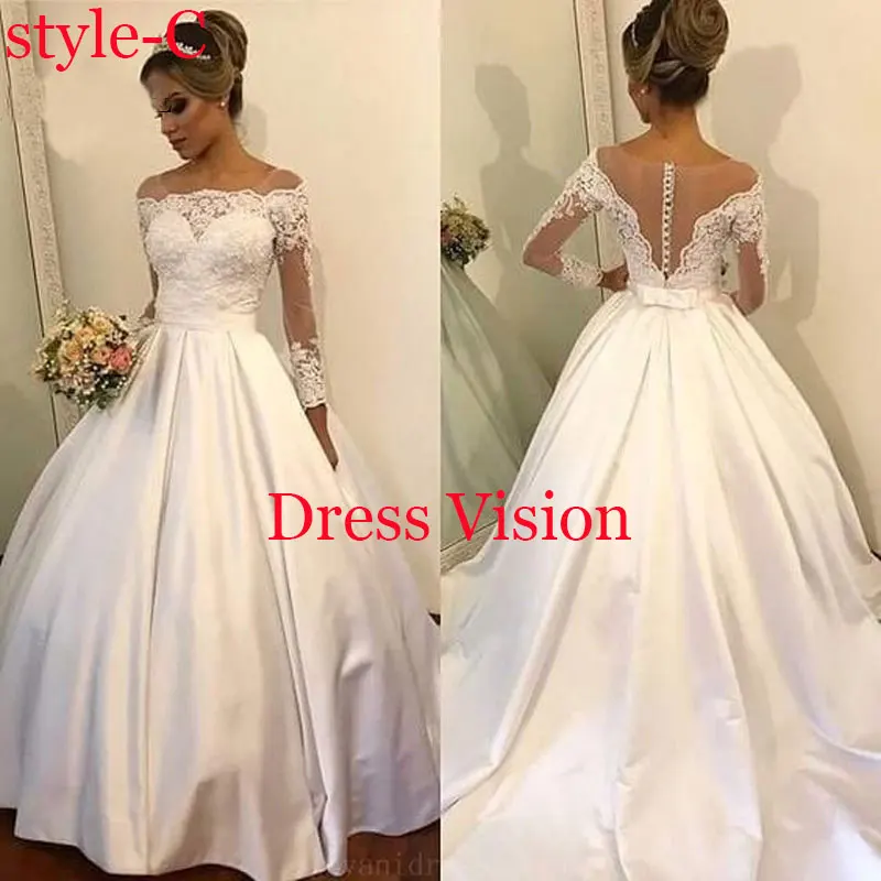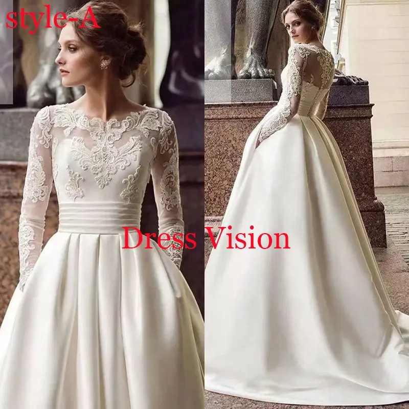 Кружевное свадебное платье с круглым вырезом и длинными рукавами, свадебное платье, свадебное платье для невесты, женское атласное платье со шлейфом