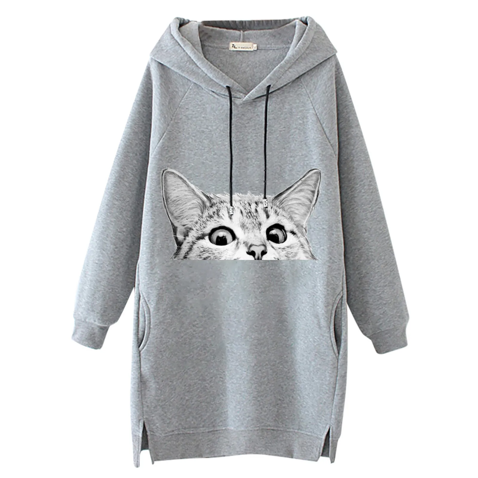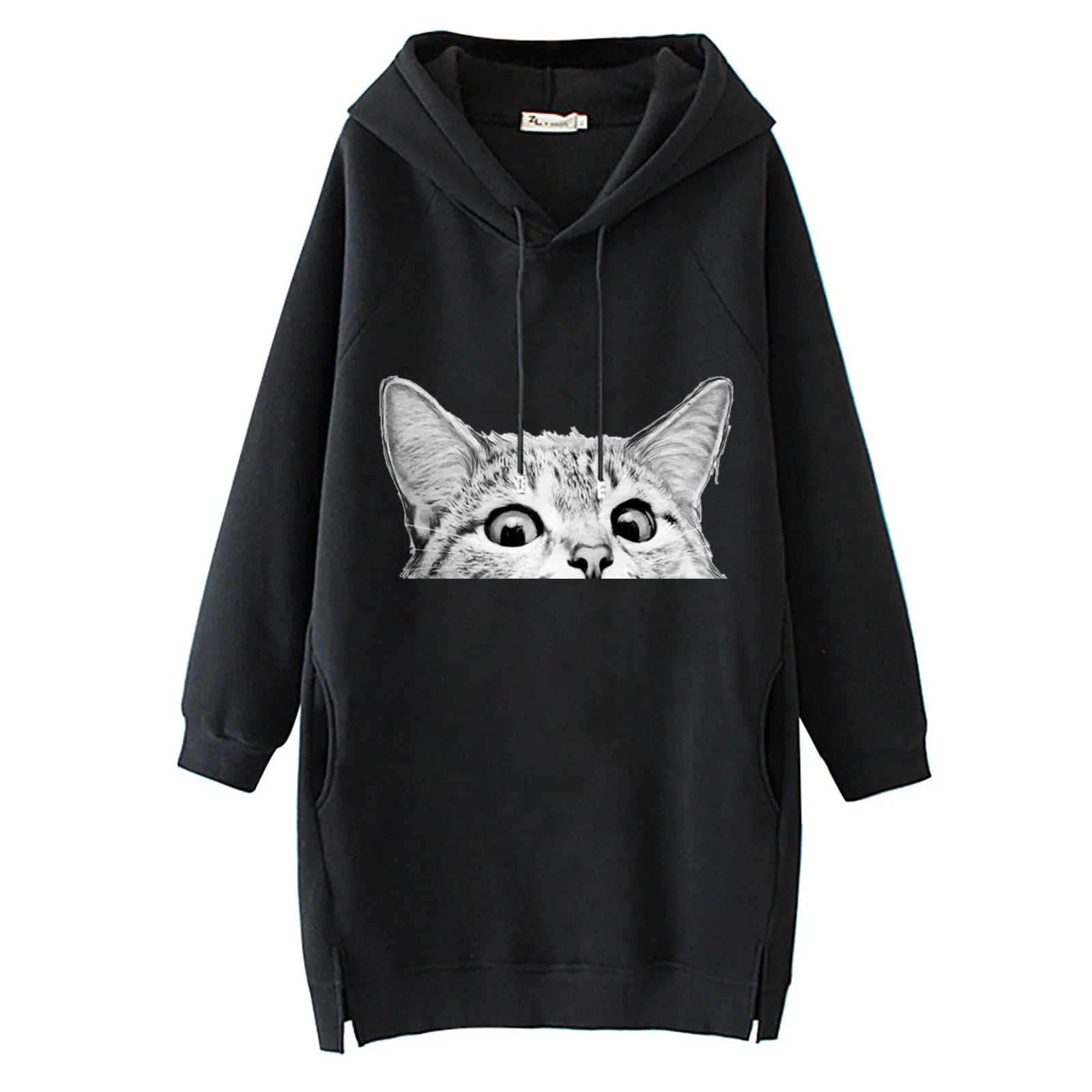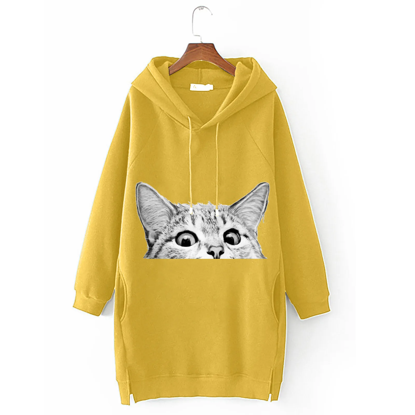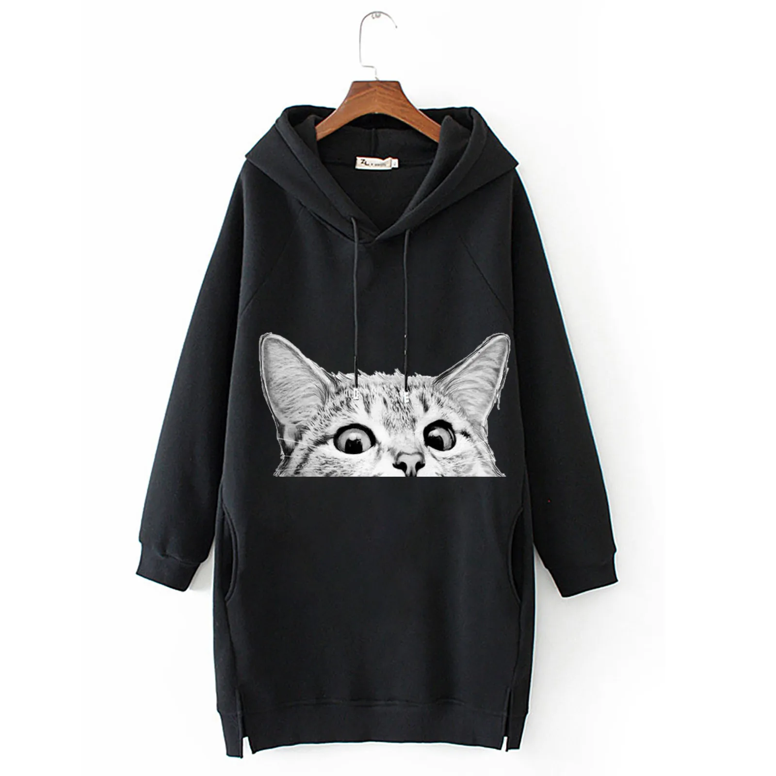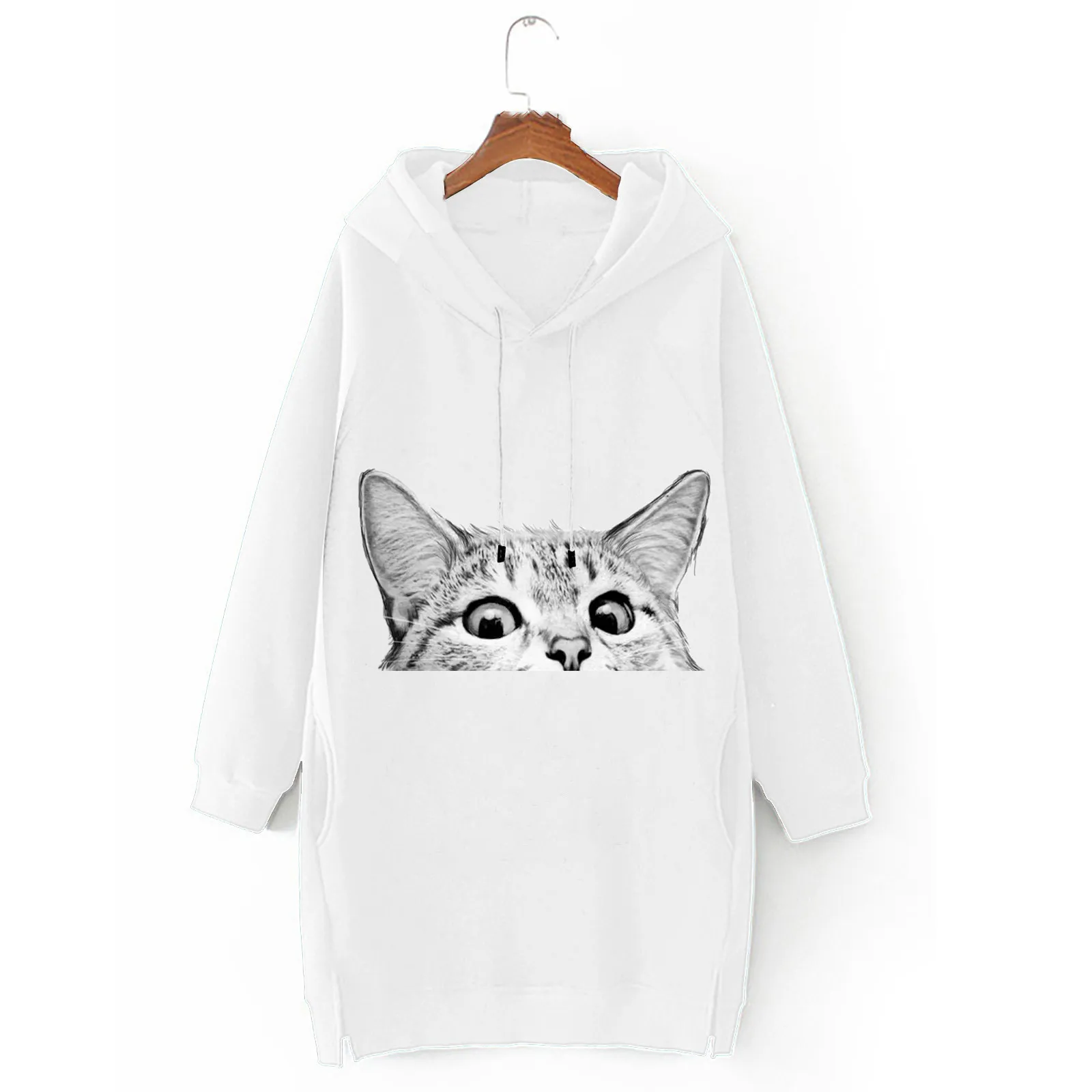 Номер моделиWomen Cartoon Cat Print Long Sleeve Splited Hoodie Sweatshirt Pullover