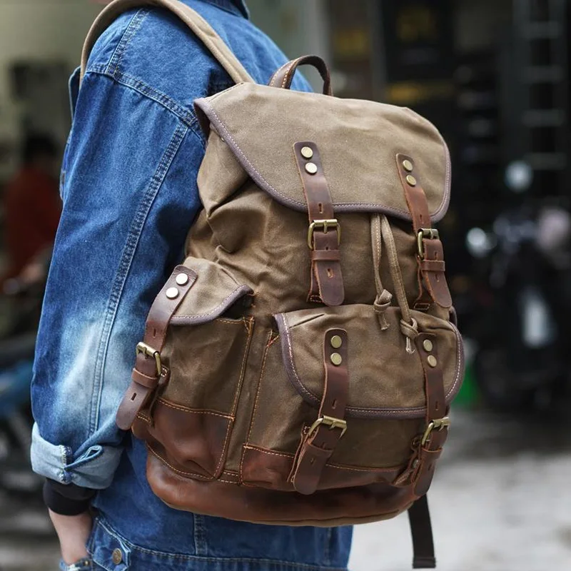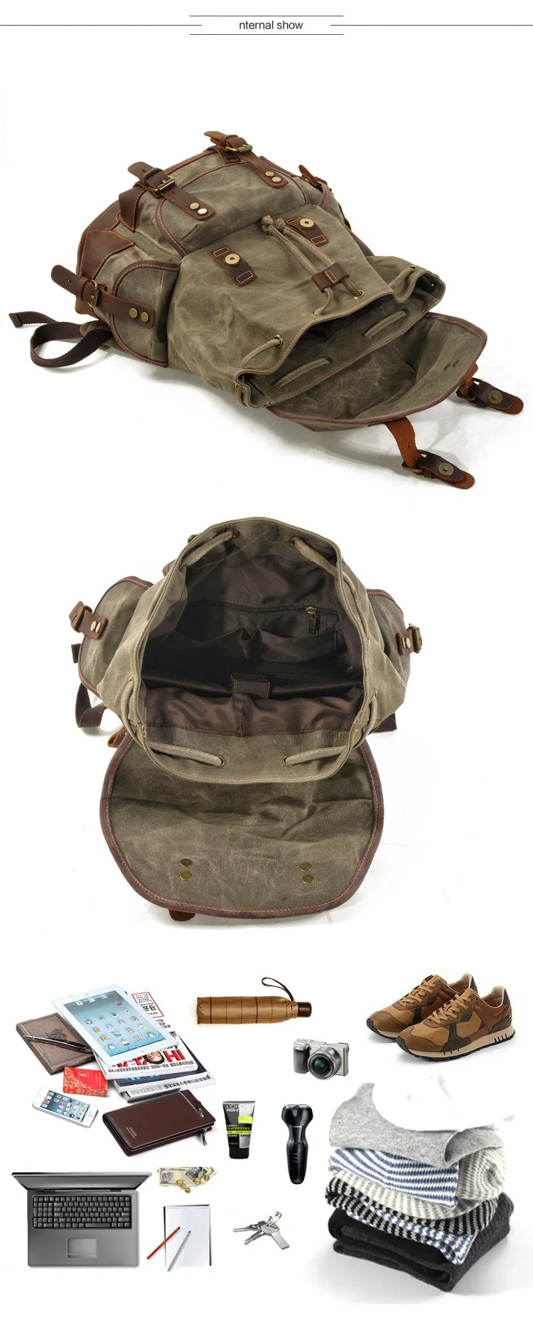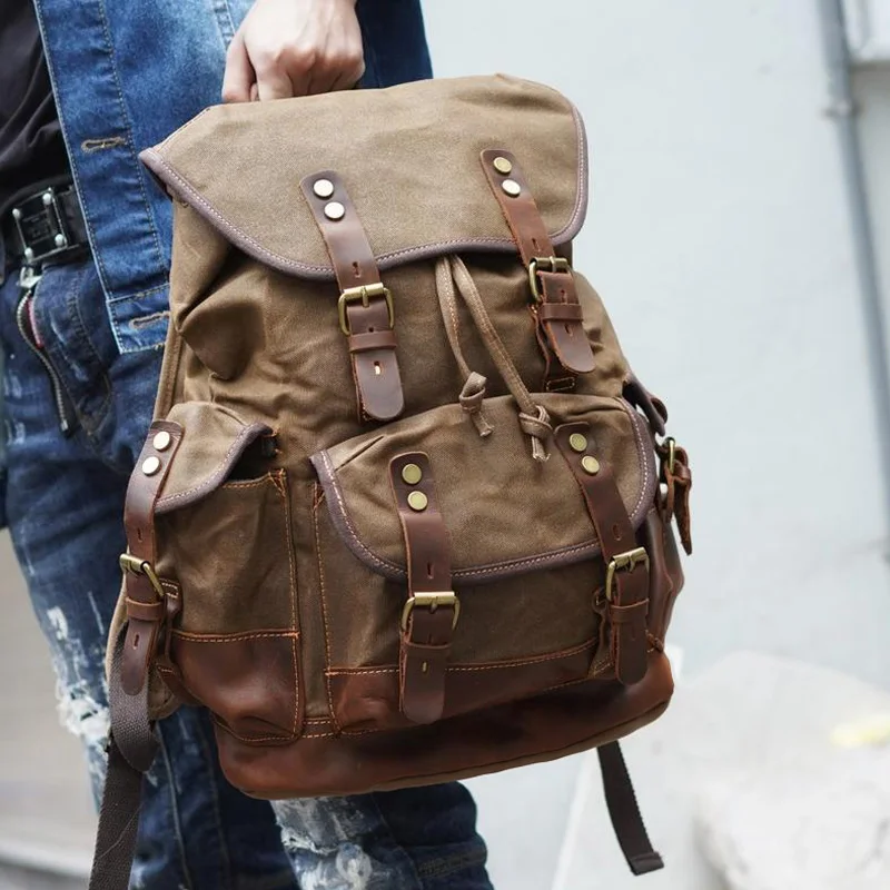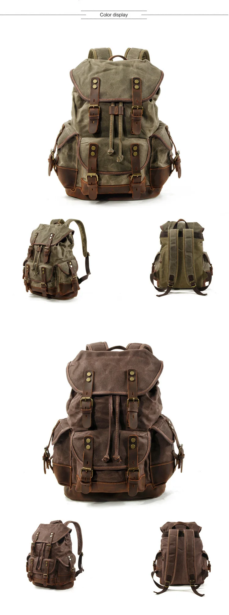 Винтажные холщовые кожаные рюкзаки для мужчин, рюкзаки для ноутбука...