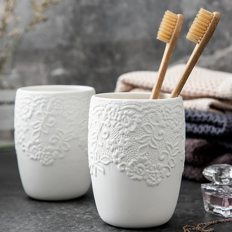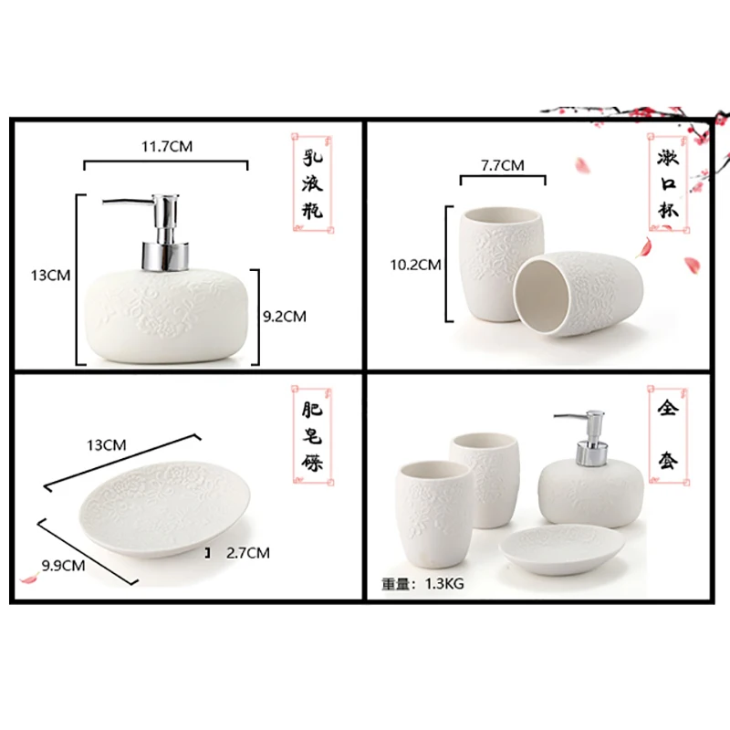 Креативный набор из четырех предметов с белым рельефным узором, аксессуары для ванной, лосьон, бутылка, мыльница, чашка для полости рта, лоток с подарочной коробкой
