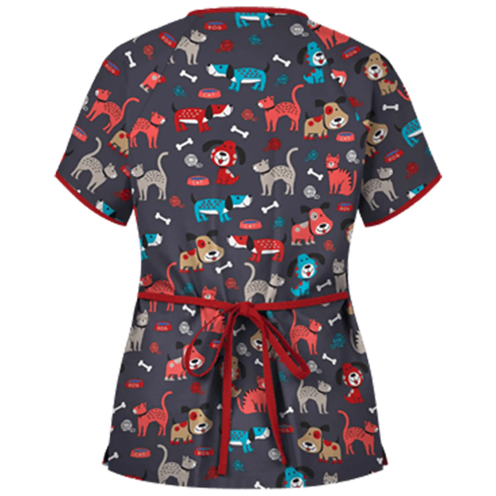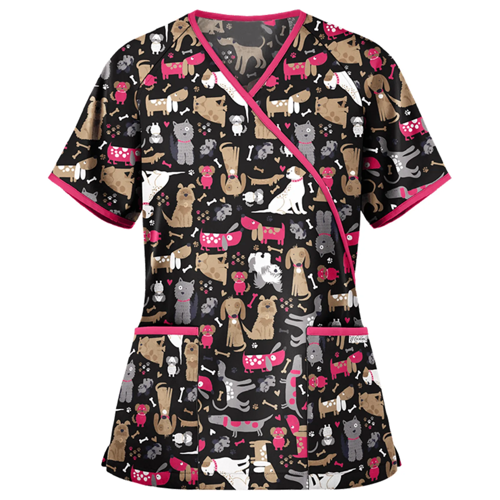 Женские топы с v-образным вырезом и коротким рукавом, рубашка с карманом, Рабочая Униформа, блузка