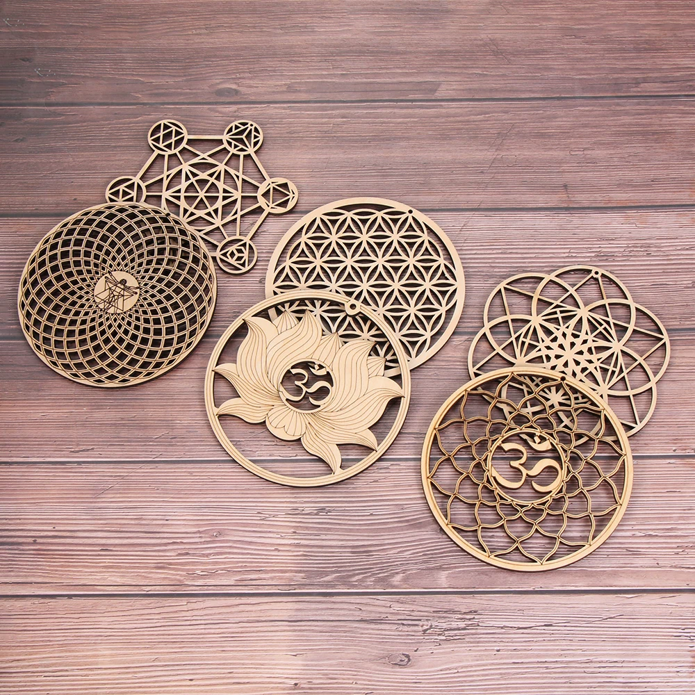 Креативные деревянные круглые круги для рукоделия, резные подставки, чакра, цветок жизни, натуральный символ, бревен, цвет, искусство и ремесла, домашний декор