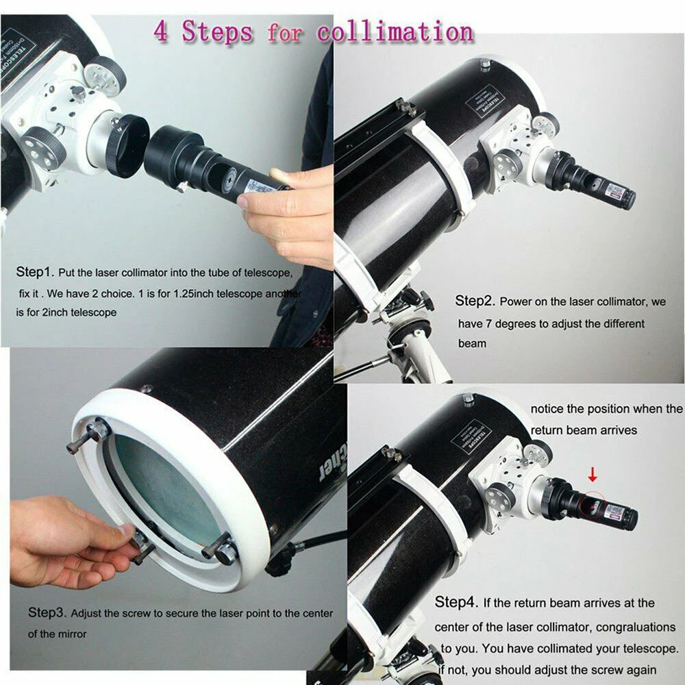 Лазерный коллиматор 1,25 дюйма, адаптер 2 дюйма для рефлектора Ньютона SCA, астрономических телескопов, лазерная Коллимация, регулируемый уровень 7 яркости