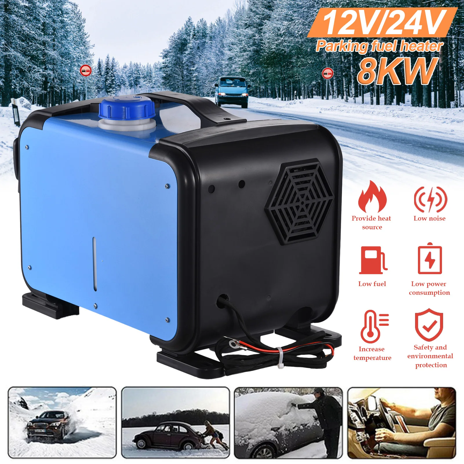 Автомобильный обогреватель, 8 кВт, 12 В, 24 В, Дизельный подогреватель воздуха, с одним отверстием, ЖК-монитор, стояночный зимний обогреватель для автомобилей, грузовиков, автобусов, лодок, автофургонов