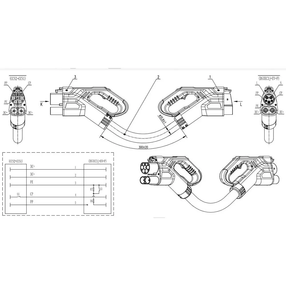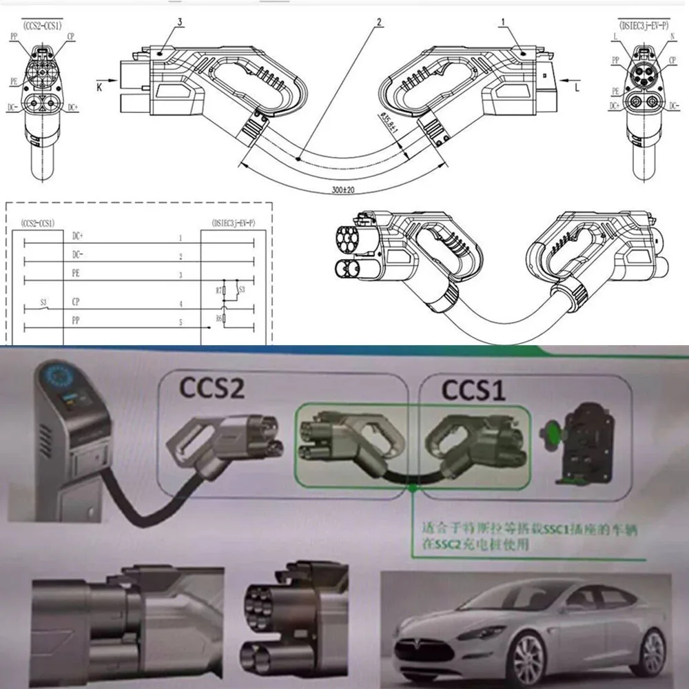 Адаптер для электромобиля 0,5 A CCS Combo 2 к CCS Combo 1 plug DC быстрое зарядное устройство адаптер с м UL кабелем зарядная станция