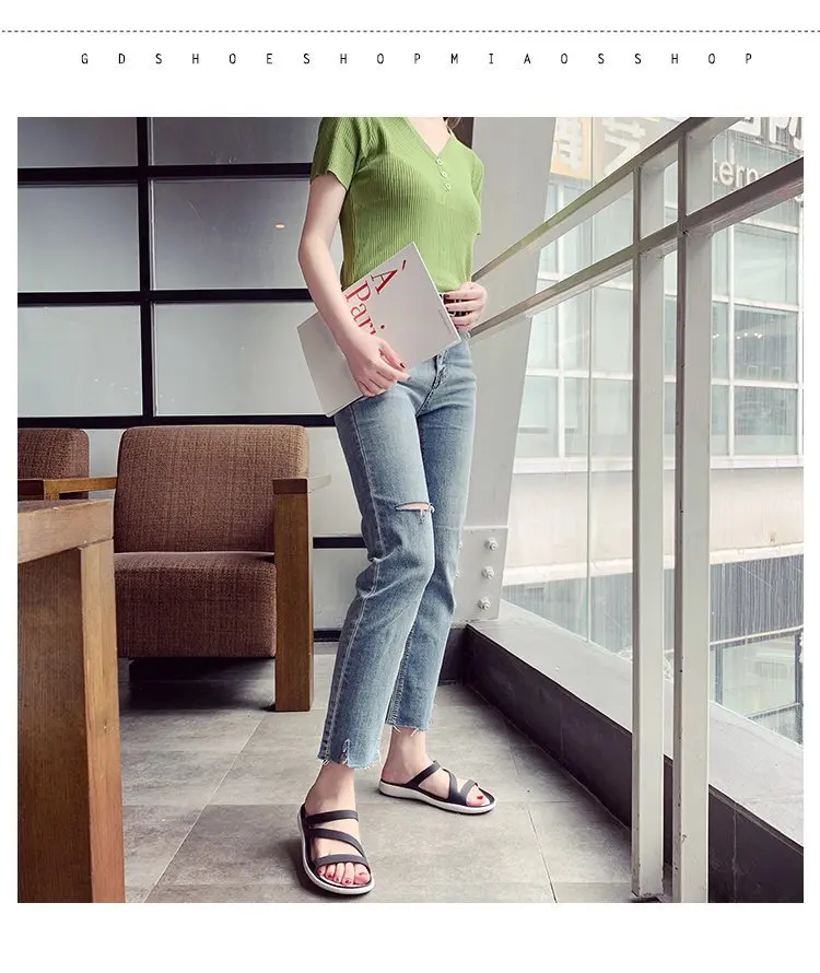 Женские летние шлепанцы на плоской подошве, Босоножки с открытым но...