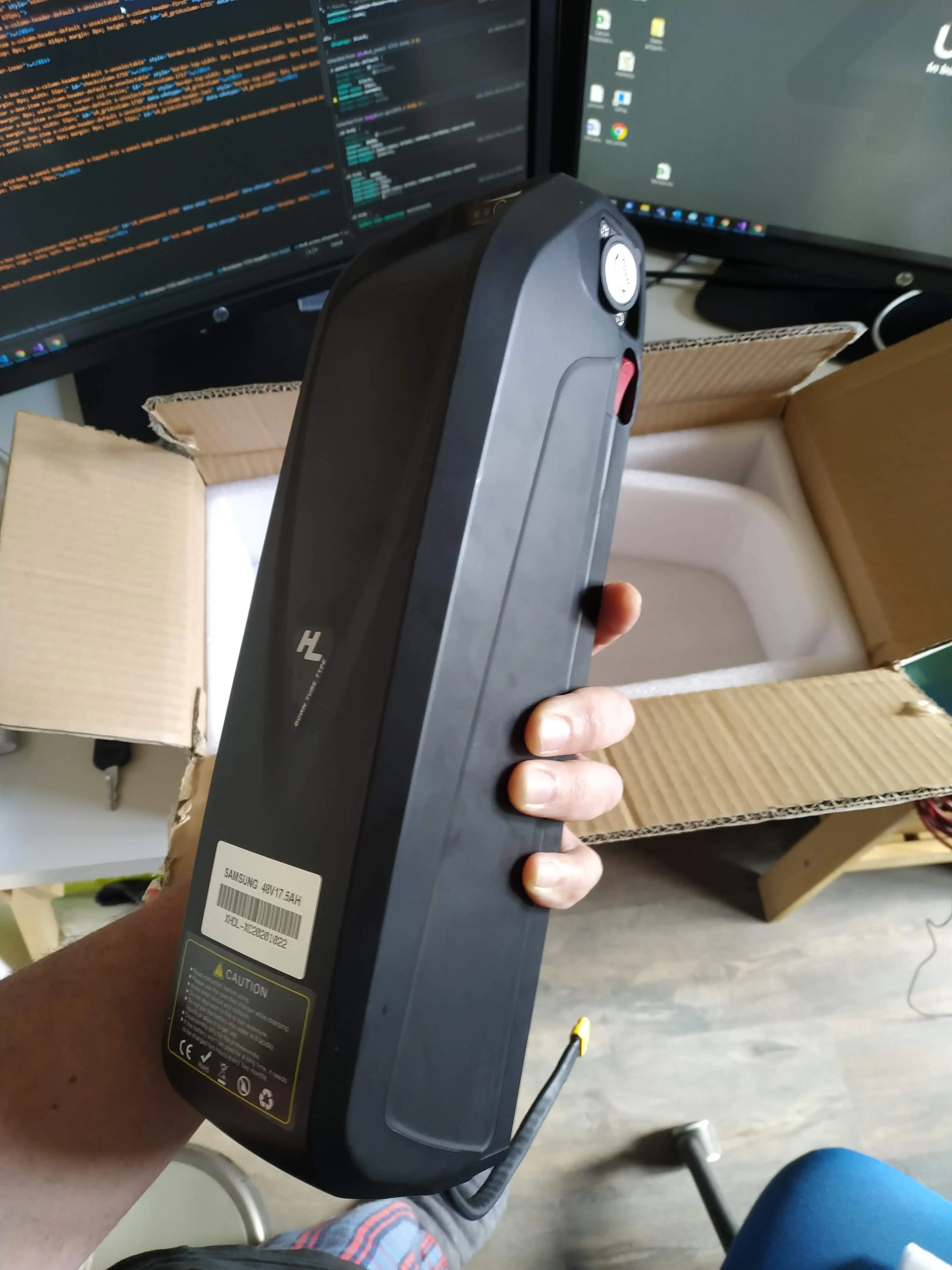 48V 24Ah Параметры:Нормальное напряжение: 48 ВНоминальная мощность: 24 АчАккумулятор: встроенный Samsung 35E 3500 мАч. 91 шт.Режим массива: 13s7pРазмер батареи: 367,36*90,25*127,33 ммВес батареи: 5 кгМаксимальная постоянная разрядка тока: 40AПиковый ток: 80AНапряжение зарядки: 54,6 вНапряжение отключения разряда: 36,4 вСпособ зарядки: CC/CVСрок службы: 1000 разТемпература зарядки:-15-65 ℃Температура разряда:-15-65 ℃Функция защиты: перезарядка, разрядка, Перегрузка по току, короткое замыкание, баланс