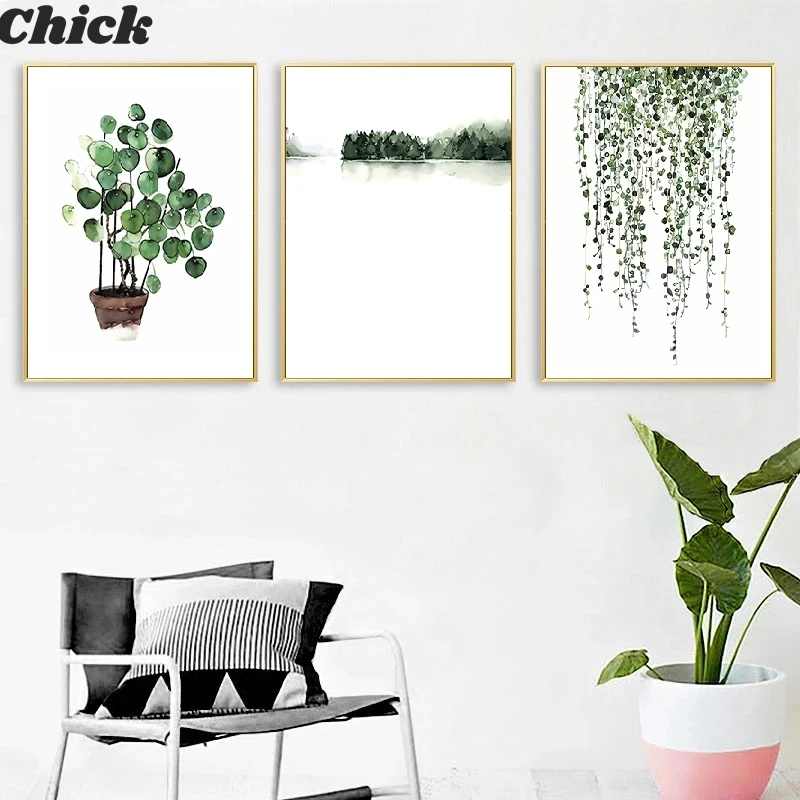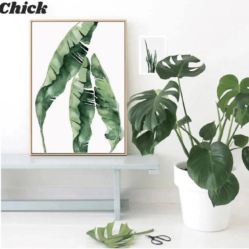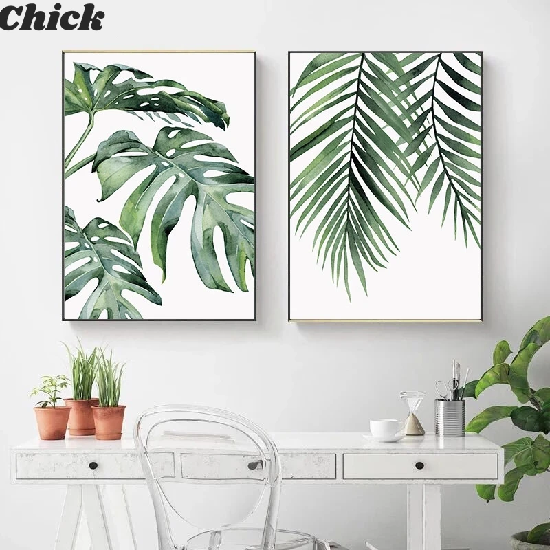 Современная Картина на холсте, постер с растениями и листьями, настенное искусство, холст, скандинавские картины и принты, декоративная картина, картина для украшения дома
