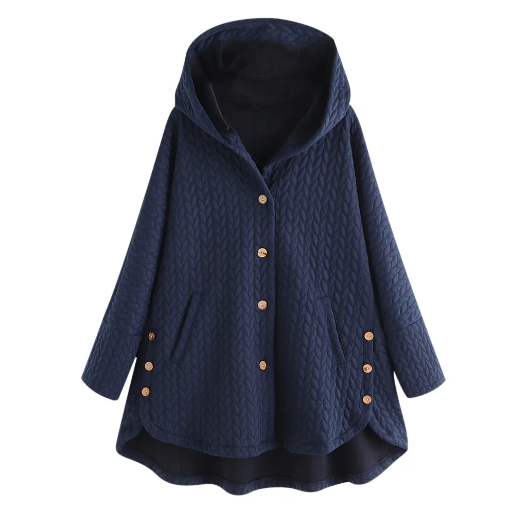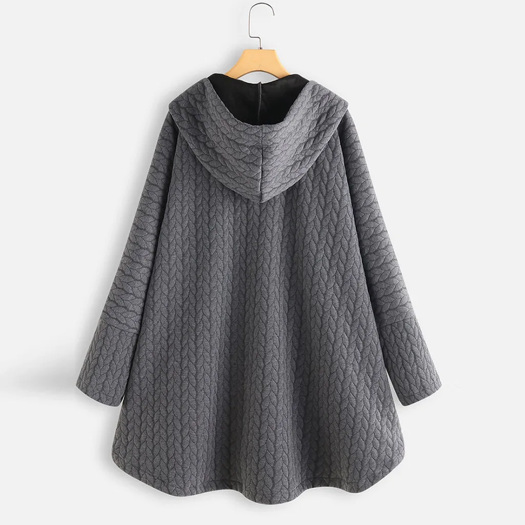 Женская куртка с капюшоном, зимнее теплое кашемировое утепленное пальто, повседневное пальто на пуговицах, карманах, с перекрученным узором, пальто с длинным рукавом и капюшоном