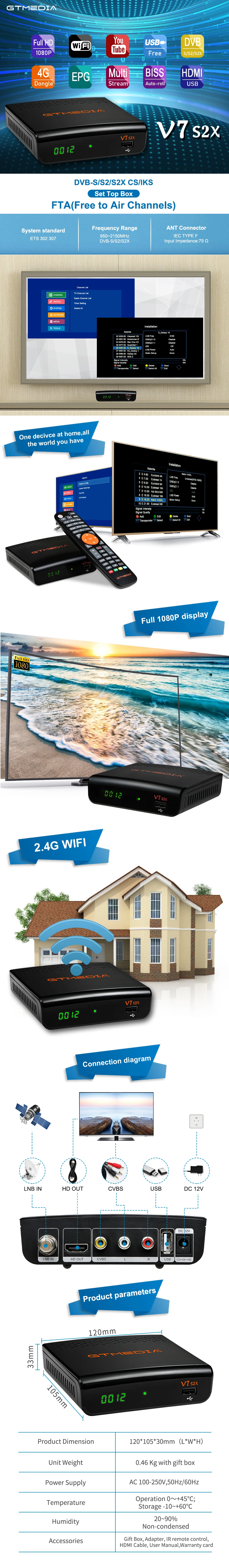 Цифровой спутниковый декодер GTMEDIA V7S2X 1080P, обновленный V7SHD, включает USB, Wi-Fi, H.265 цифровой приемник, ТВ-приставка, бесплатная доставка, Noapp