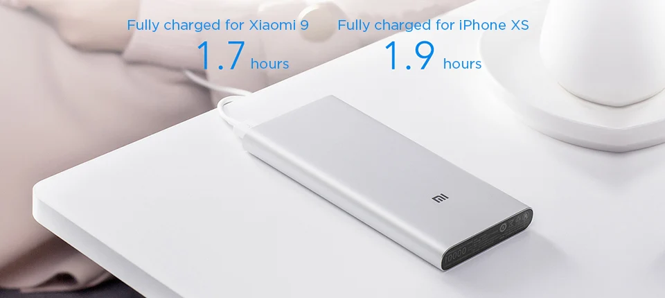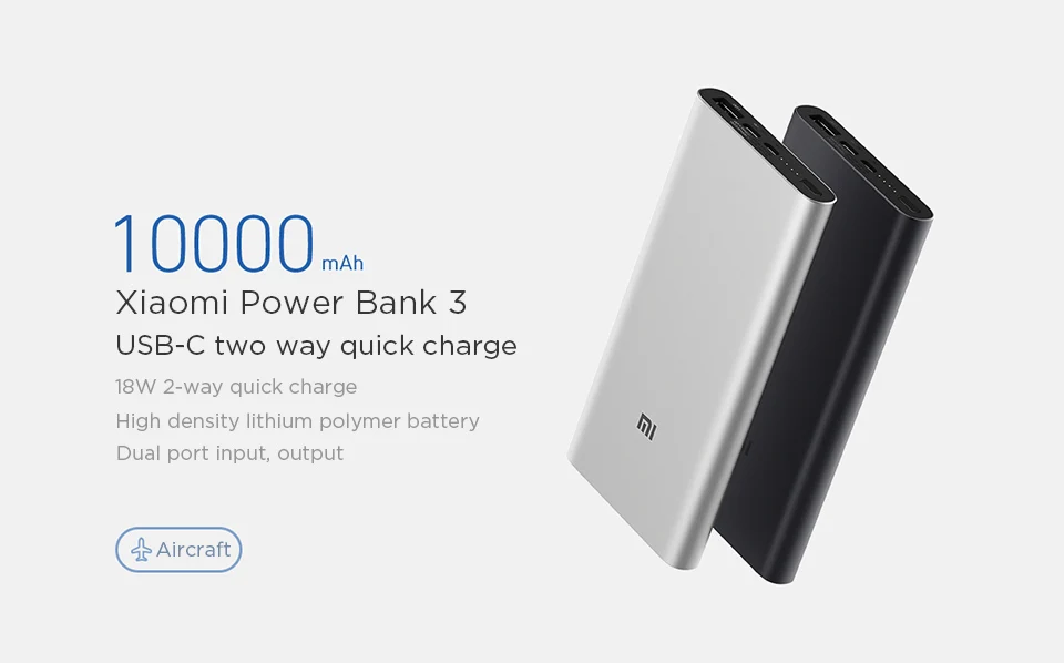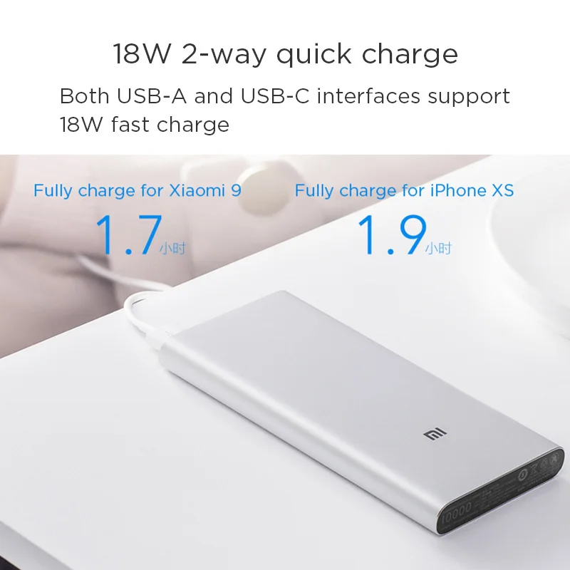 Высокопрочная версия Xiaomi mobile power, литий-полимерные батареи высокой плотности Двусторонняя быстрая зарядка, толщина всего 12,6 мм
