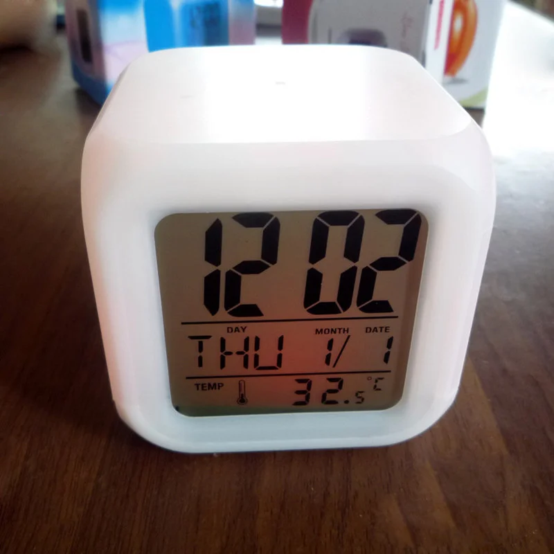 Светодиодный Будильник, 7 цветов, меняющий цвет, цифровой Настольны...