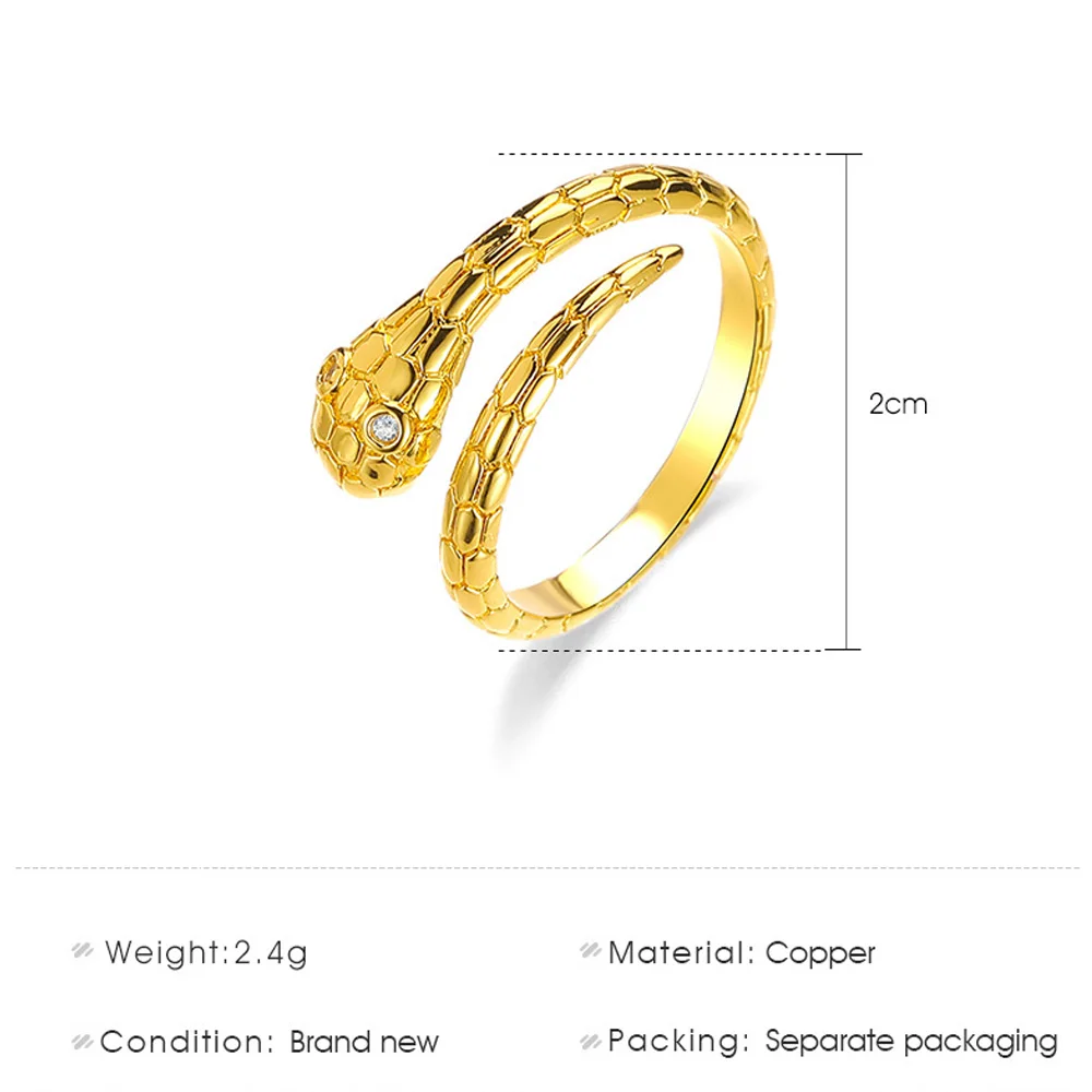 Кольцо QUEEN ELISA, регулируемое, из кольца в виде змейки циркония, в готическом стиле, золотое, металлическое, 2021 пробы