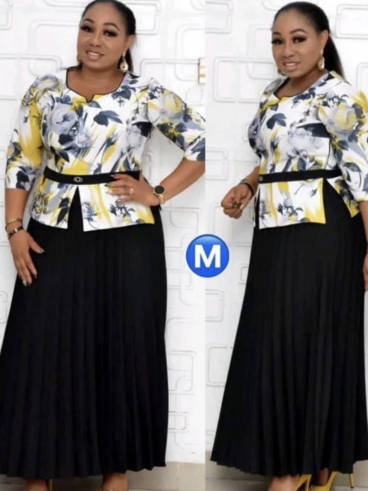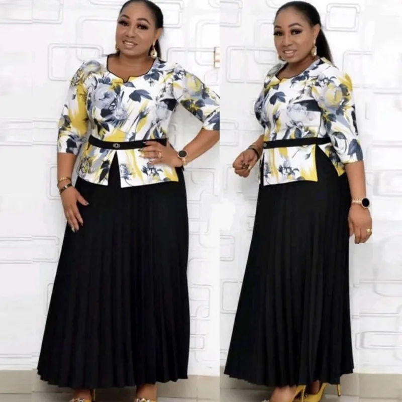 2021 африканские платья Дашики с принтом для женщин большого размера Плиссированное Платье макси с рукавом 34 новый африканский дизайн Лоскутные вечерние платья