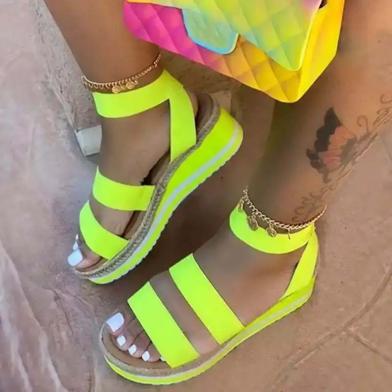 Босоножки женские туфли на танкетке на платформе карамельных Цвет Дамская обувь из пенькового волокна текстильной женская летняя повседневная обувь без застежки; Обувь с поперечным Ремешком для девочек, большие размеры