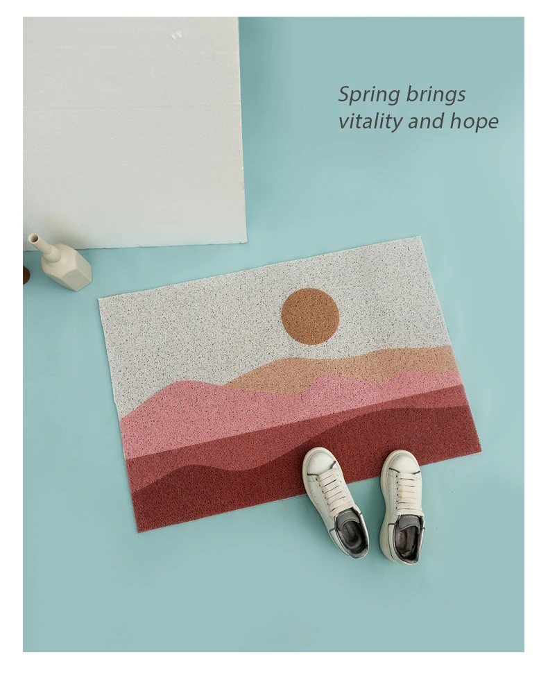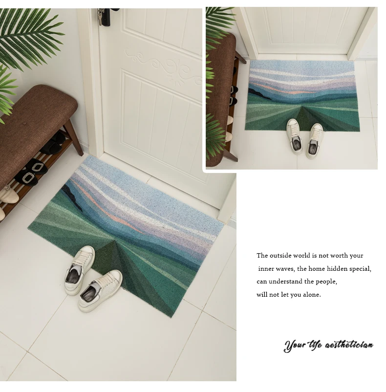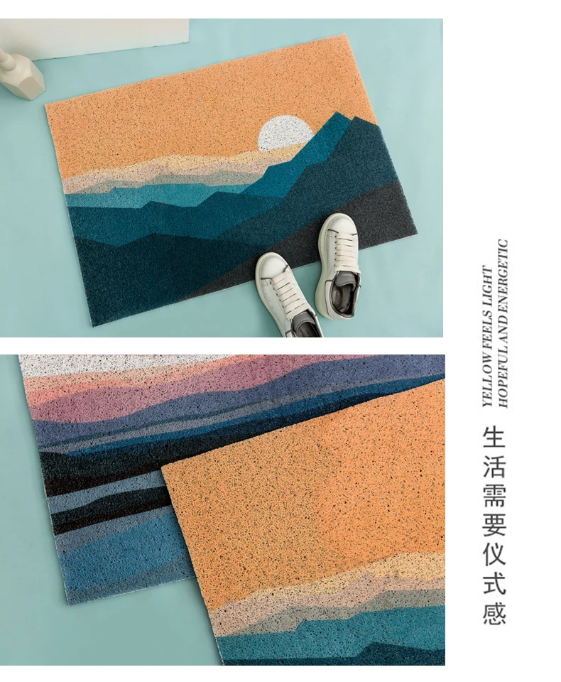 > Дверной коврик из ПВХ с шелковой петлей изготовлен из экологически чистого и безвредного материала. > Толщина дверного коврика составляет около 8 мм, он может полностью лежать на полу и не препятствует открыванию и закрытию двери. > Его можно свободно разрезать на любые формы, которые вы хотите, и подходит для внутреннего и наружного входа, прихожей, фойе и т. д. > Нижняя часть дверного коврика изготовлена из нескользящего материала, чтобы предотвратить скольжение дверного коврика и защитить вашу безопасность. > Материал выше может поглощать влагу от обуви, чтобы сделать полы чистыми и сухими, а также удалять пыль, грязь, снег и т. д. > Когда коврик заполнен частицами грязи, вы можете просто очистить его с помощью пылесоса, или вы можете использовать садовый шланг в краску, затем дайте дверному коврику полностью высохнуть на воздухе перед следующим использованием. > Наш коврик может быть настроен в соответствии с размером дверного входа, пожалуйста, свяжитесь с нами, если вам нужно настроить.
