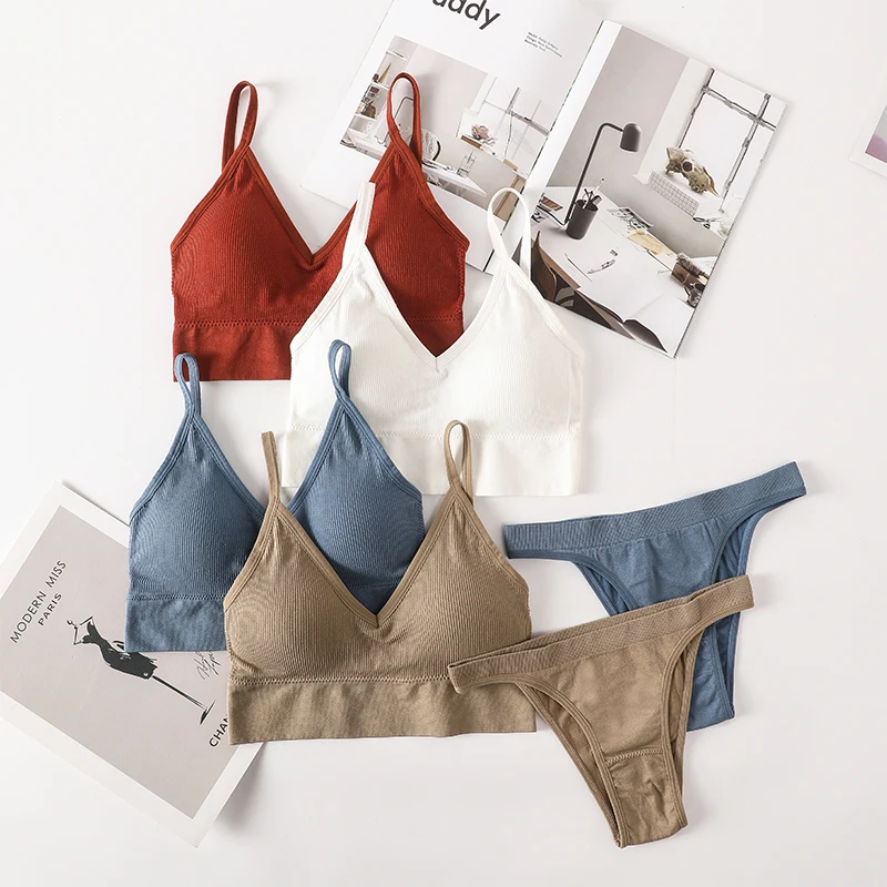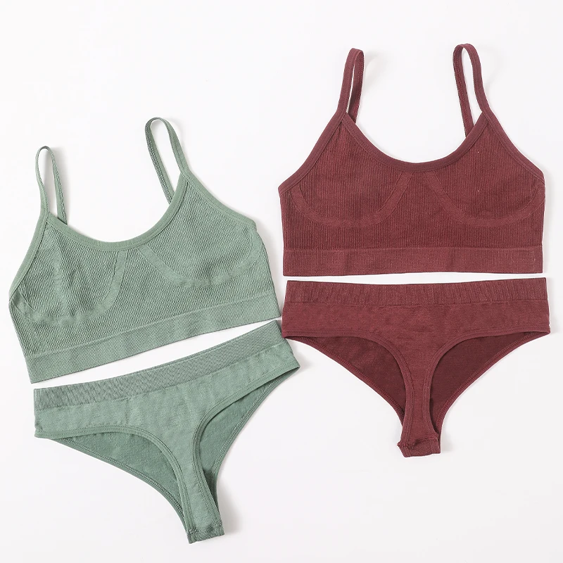 Бесшовный Бюстгальтер с вкладышами топ + трусики-стринги