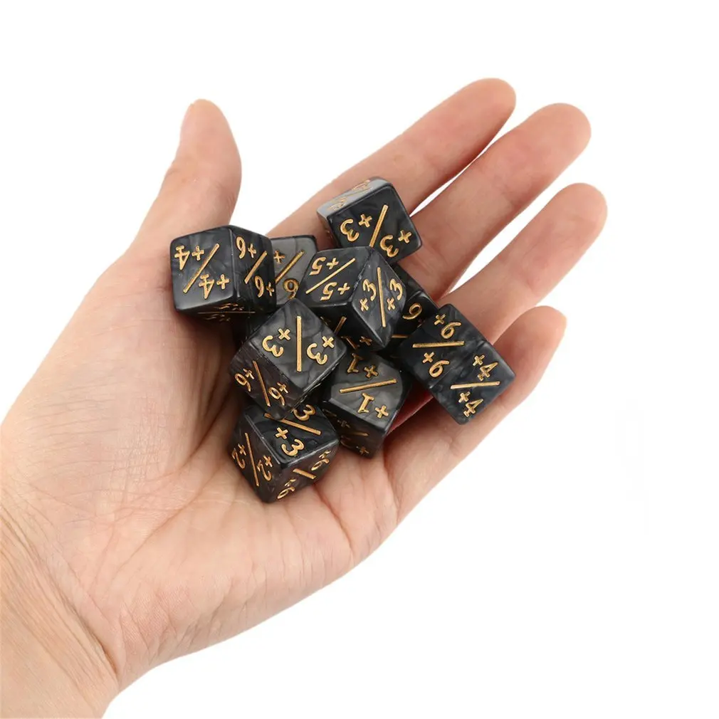 10 счетчиков игральных костей, 5 положительных + 1+ 1 и 5 отрицательных-1-1 для волшебной настольной игры, смешные кубики высокого качества