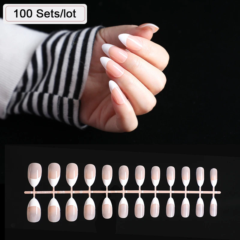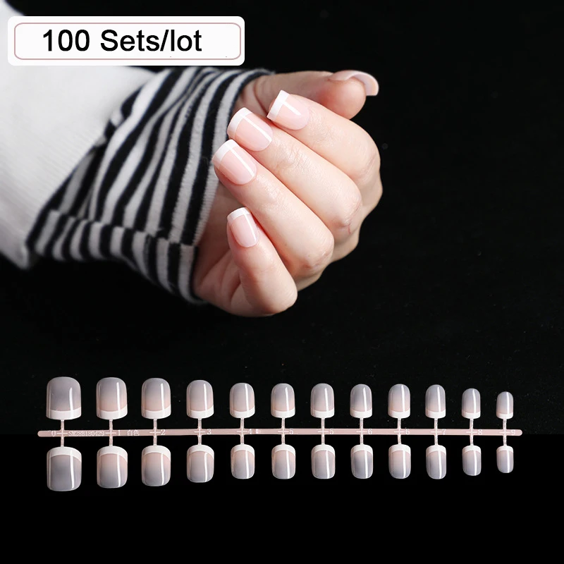 Накладные ногти, короткий гроб, акриловые накладные ногти, Классические французские ногти, накладные ногти, 100 шт. в наборе