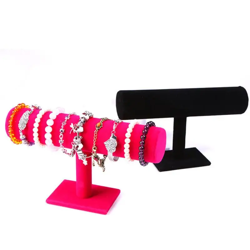 Хит продаж, Вельветовая стойка для демонстрации браслетов, цепочек, ювелирных изделий, браслетов, ожерелий, часов, органайзер, подставка, портативный держатель для браслета, ожерелья, Т-образной балки, черный