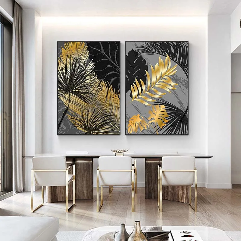 Картина большого размера на холсте, настенная живопись с золотым де...