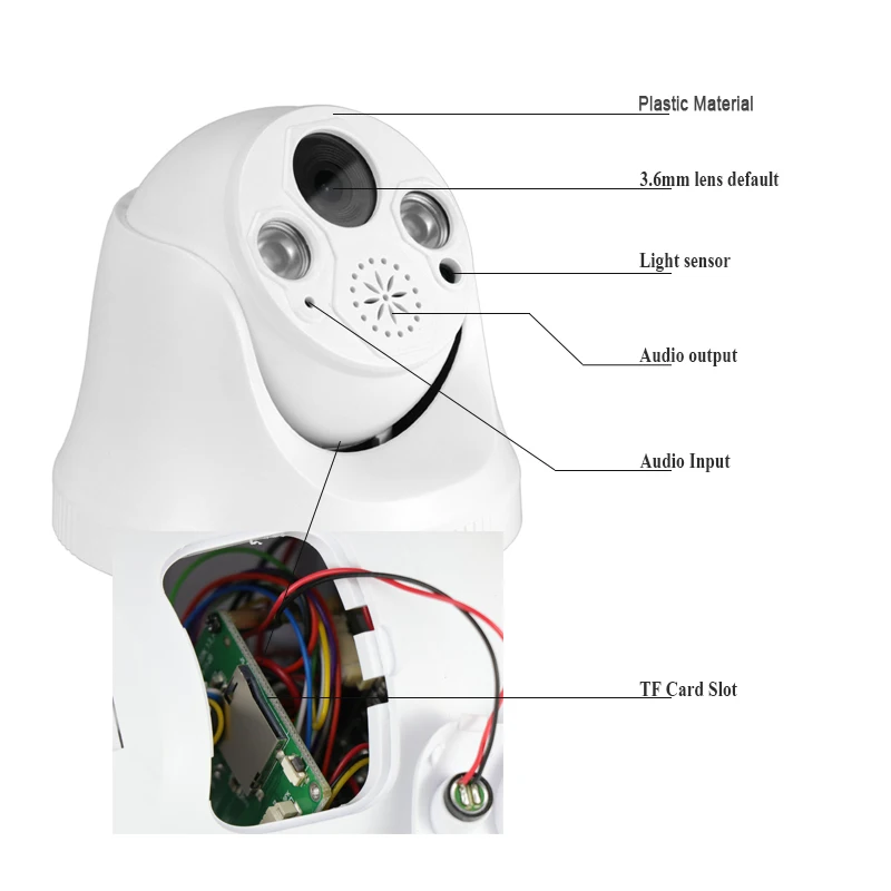 Встроенный микрофон и динамик. Вы можете связаться с кем-либо под камерой наблюдения через ваш смартфон, ipad или компьютер, даже если вы находитесь в тысячах миль.