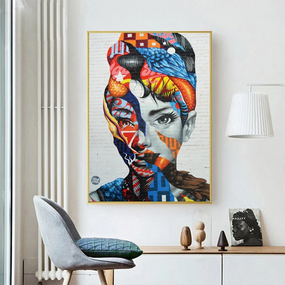 Абстрактная женщина лицо граффити уличное искусство Масляная живопись на холсте плакаты и принты поп настенное искусство для гостиной Декор акварель