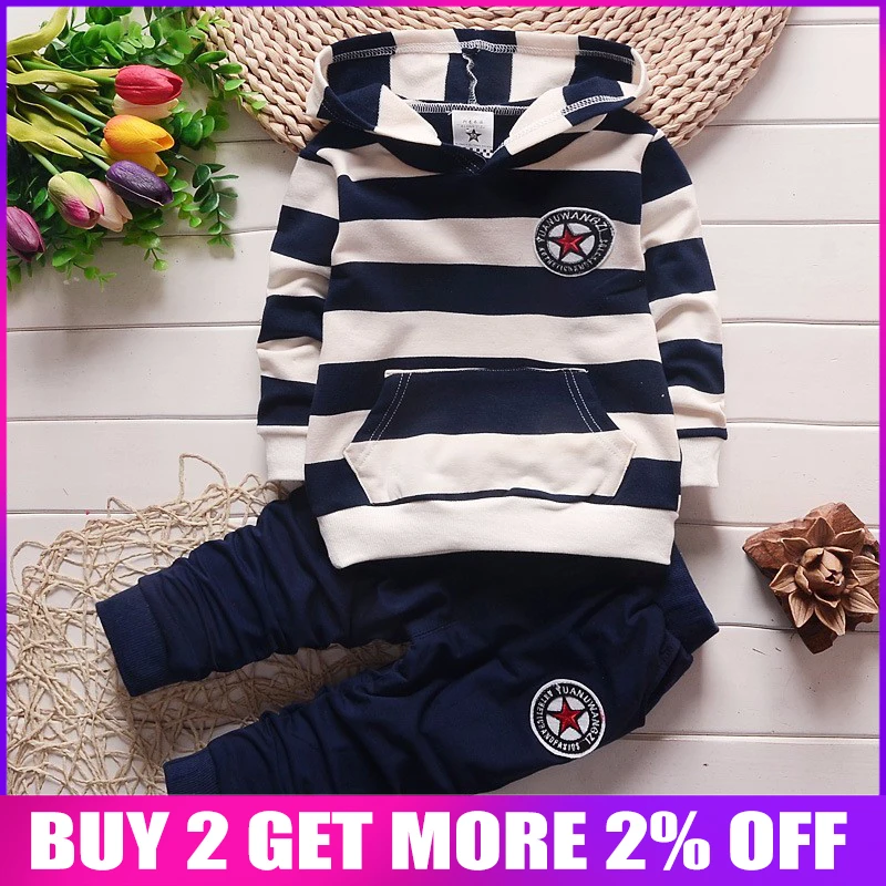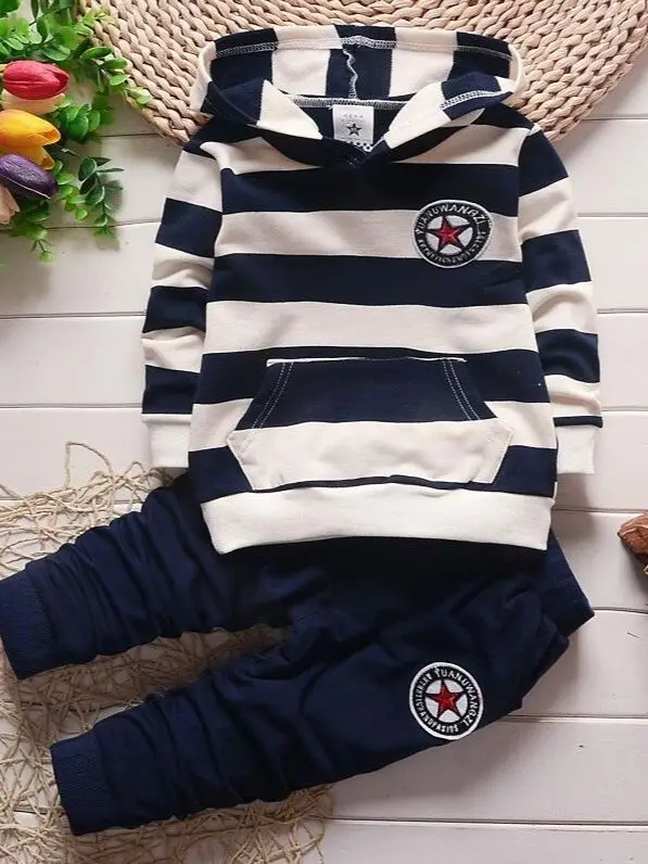 BabiColorкомплект одежды для маленьких мальчиков; Сезон весна-осень; Модные хлопковые топы в полоску с капюшоном + штаны; Детский спортивный костюм из 2 предметов для мальчиков