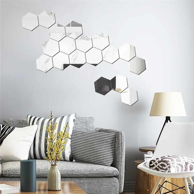 12 шт.компл. DIY 3D зеркальная Настенная Наклейка Шестигранная дома...