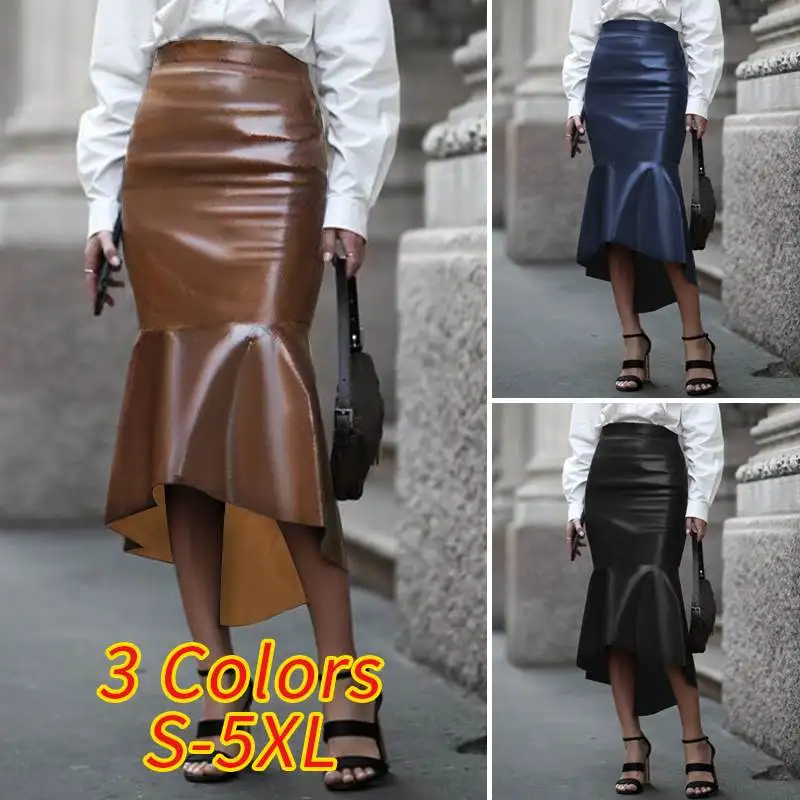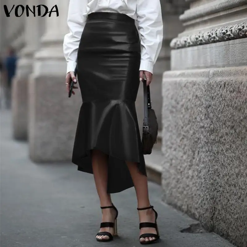 Элегантная женская юбка из искусственной кожи 2021 VONDA Сексуальна...
